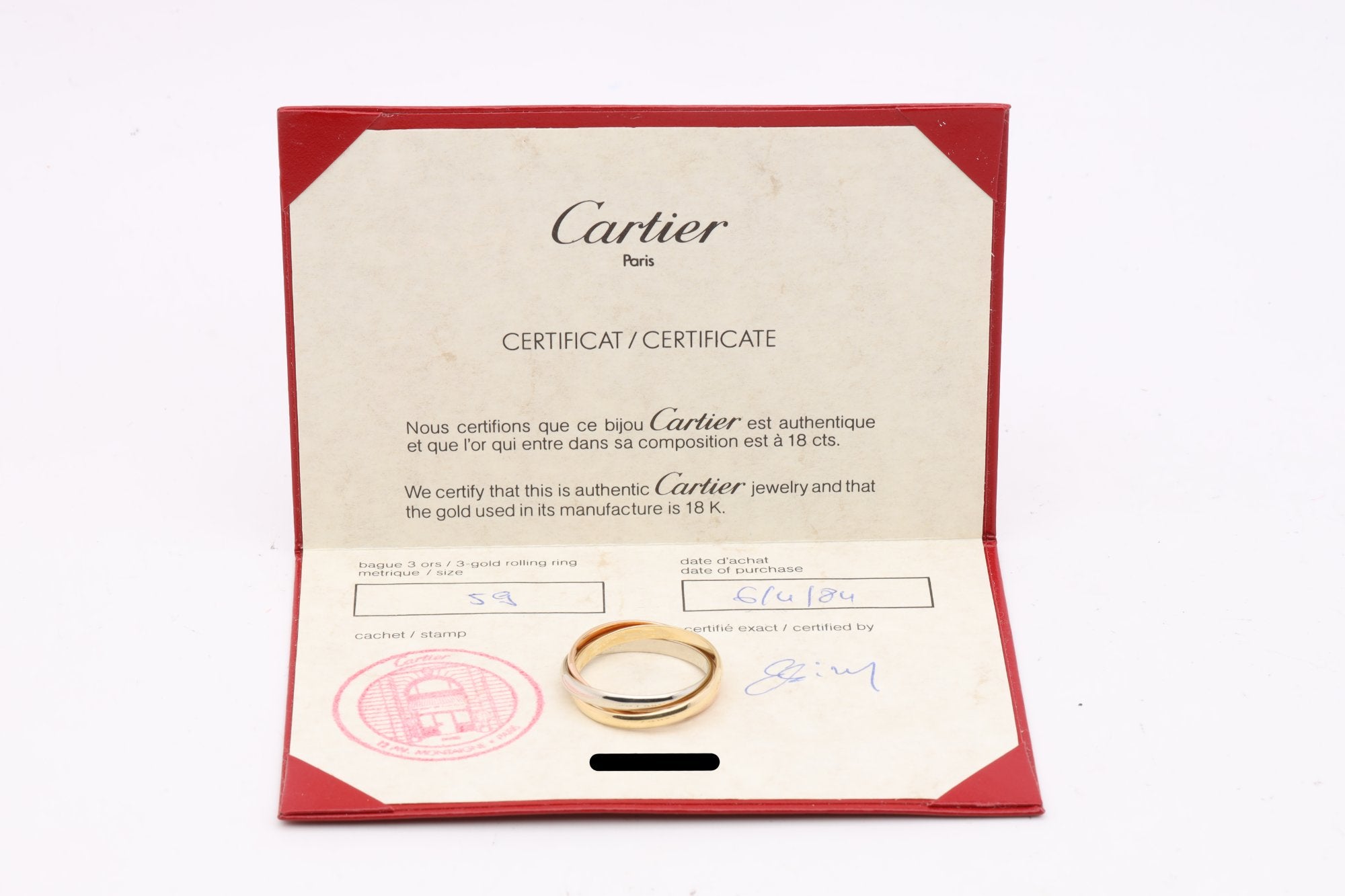 The ring is in excellent condition, showing only slight signs of wear. It is an original piece from the Trinity collection, and it comes with its papers, adding to its value and authenticity.