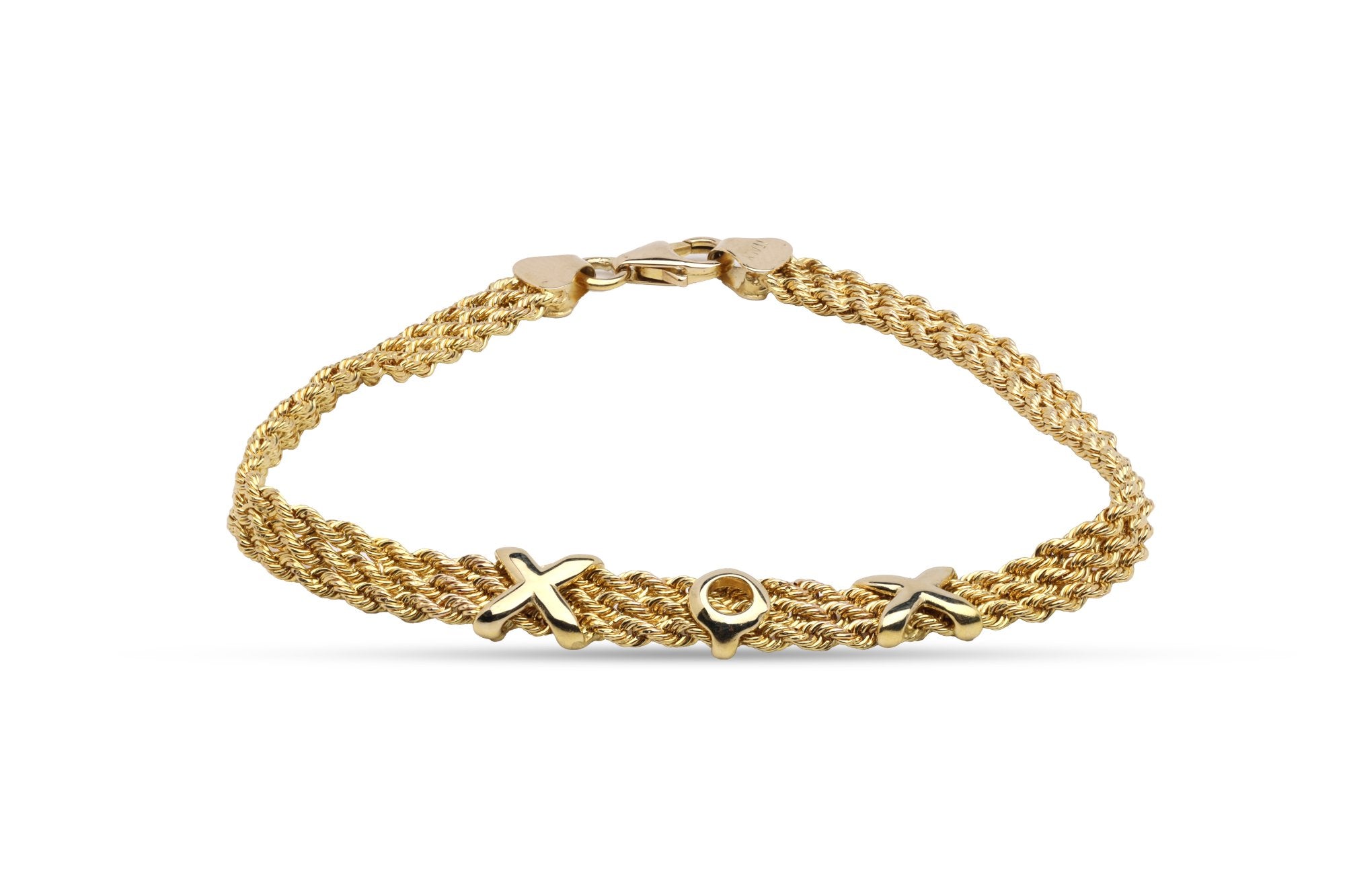 7.5'' 14k Yellow Gold 3 Strand Rope Chain XOX Bracelet (5.05g.)
