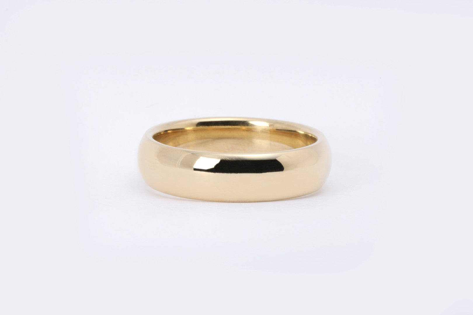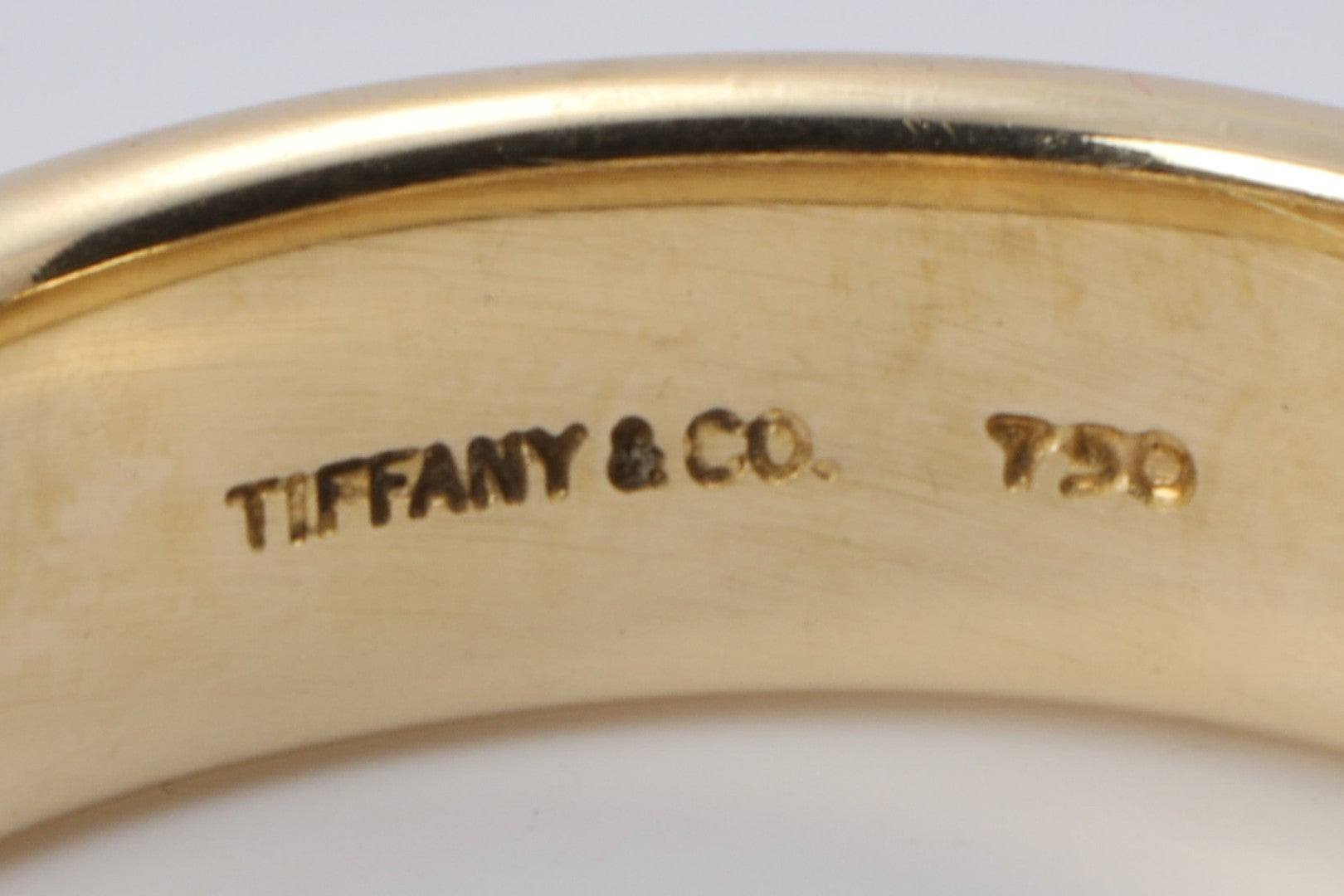 A timeless expression of commitment, this Tiffany & Co. "Tiffany Forever" wedding band is crafted from rich 18k yellow gold and weighs 9.92 grams. Designed with elegant simplicity, the band measures 5.80mm in width and 2.15mm in height, fitting a size 9.75 finger. A classic unisex style that embodies enduring love. Originally retailed for $2,200.