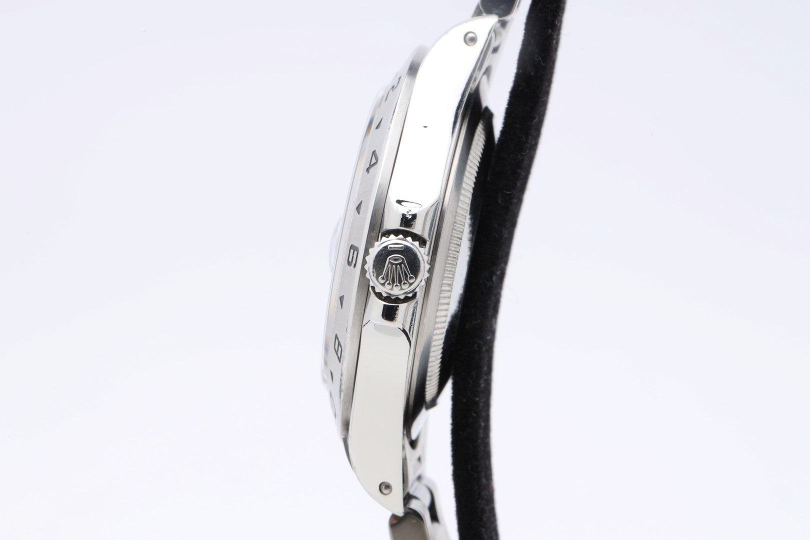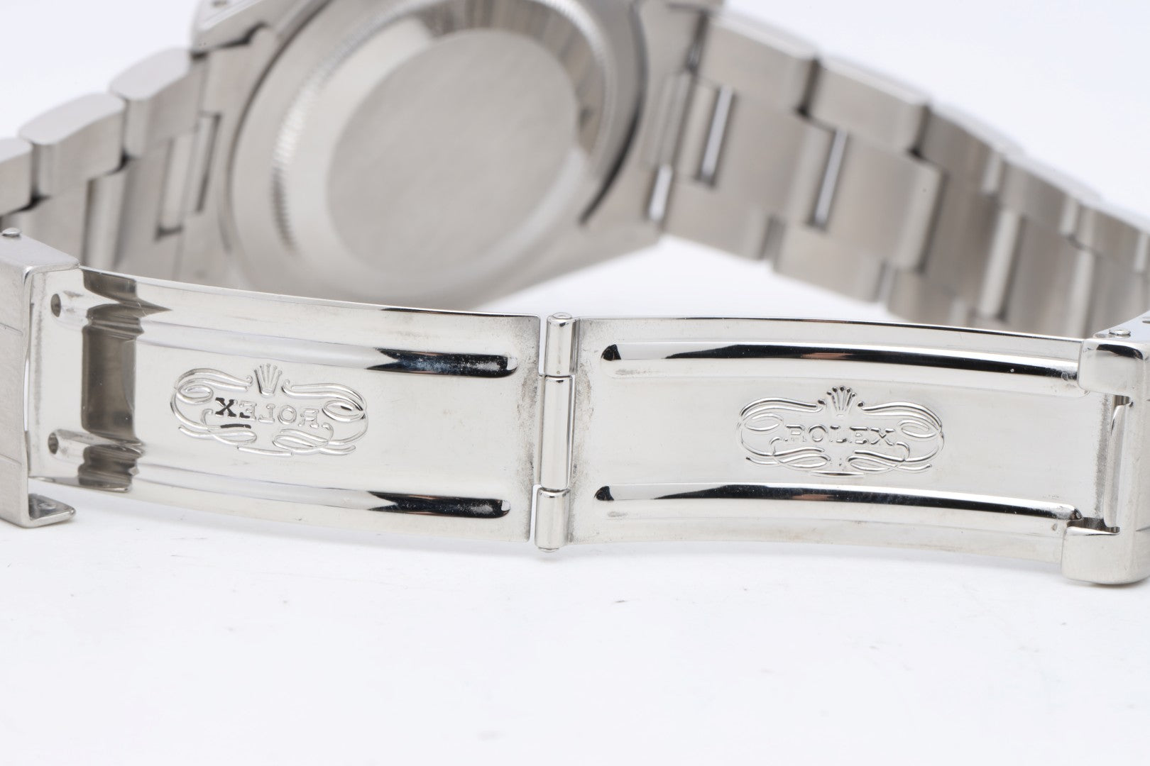 A classic Rolex Explorer II reference 16570 from 1997, built for adventure and everyday durability. Crafted in Switzerland, this 40mm stainless steel model features a fixed bezel and sapphire crystal, paired with a stainless steel Oyster bracelet. Powered by the automatic Rolex caliber 3186 movement, it offers a 48-hour power reserve and is currently running at approximately +7 seconds per day. Water resistance is rated to 10 ATM, and the watch has passed a pressure test up to 5 bar. Recently serviced on 1/10/2026, this Explorer II delivers dependable performance with timeless sport styling. The bracelet fits up to a 7.25" wrist and includes 4 screws.