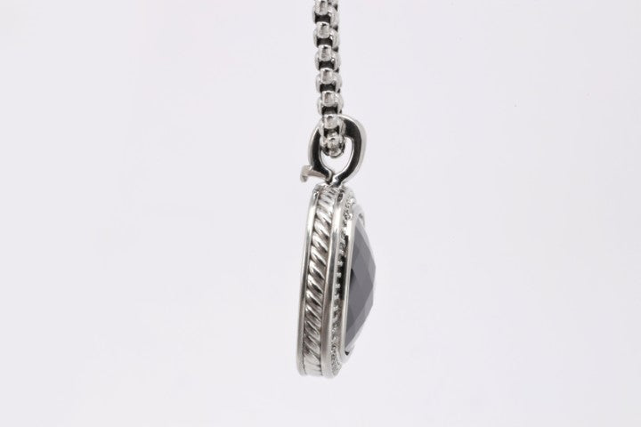 20" David Yurman 925 Silver 15mm Onyx and Diamond Albion Necklace (19.25g.)