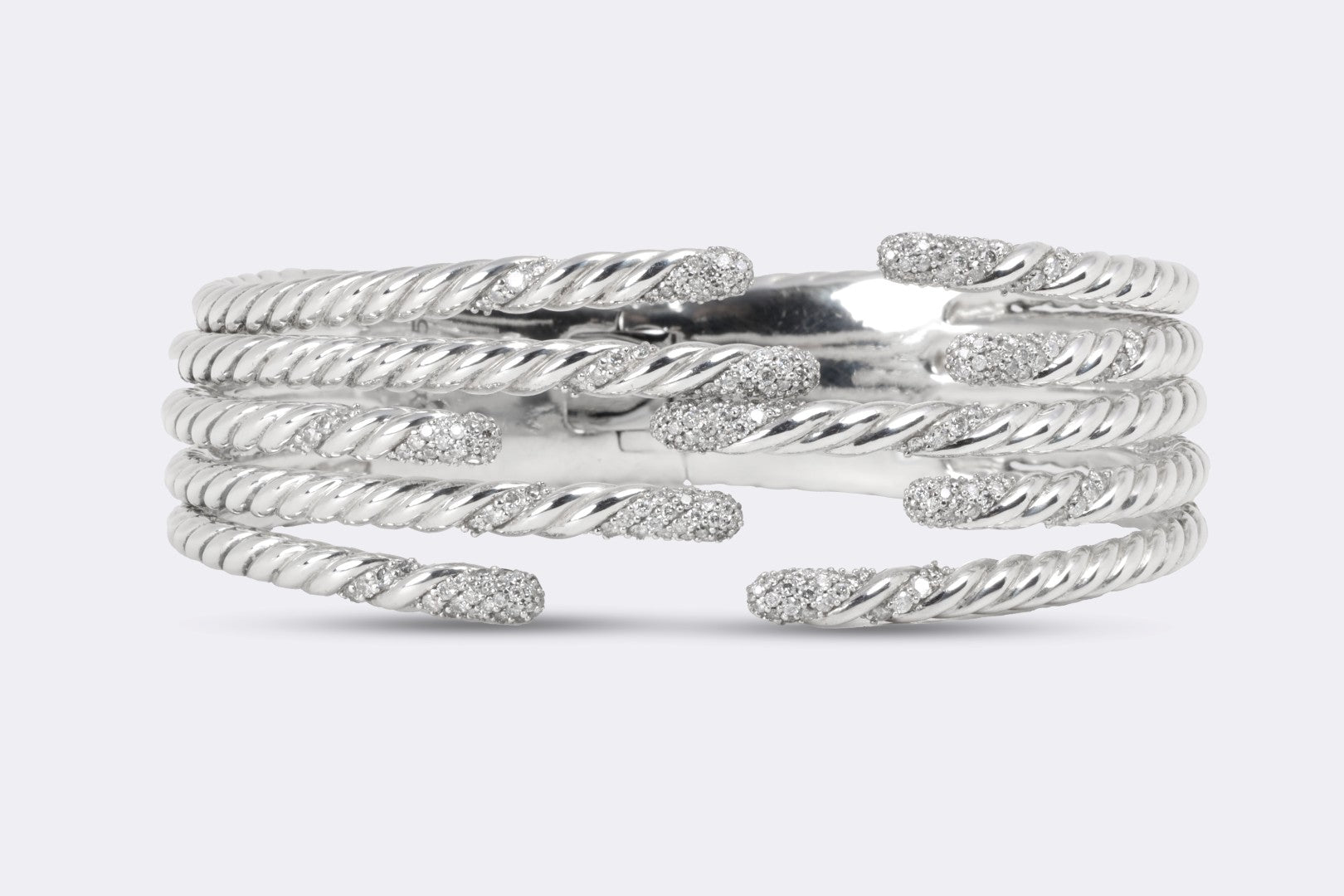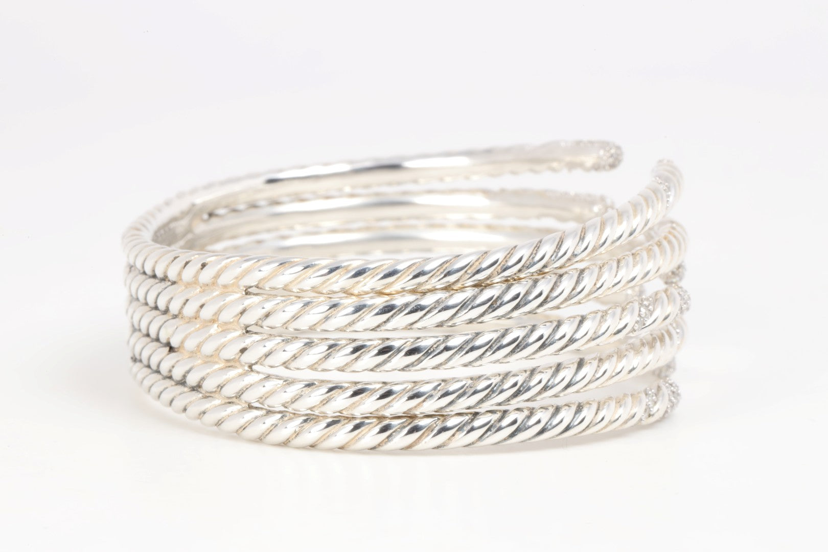6.5" David Yurman 925 Silver Diamond 5 Row Open Willow Bracelet (59.48g.)