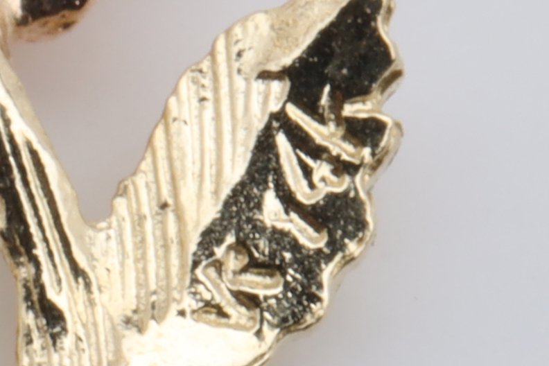 These exquisite earrings are crafted from yellow and rose gold, forming a textured rose stem design. The earrings are marked with the stamp '14kt', indicating their high purity of 585.
