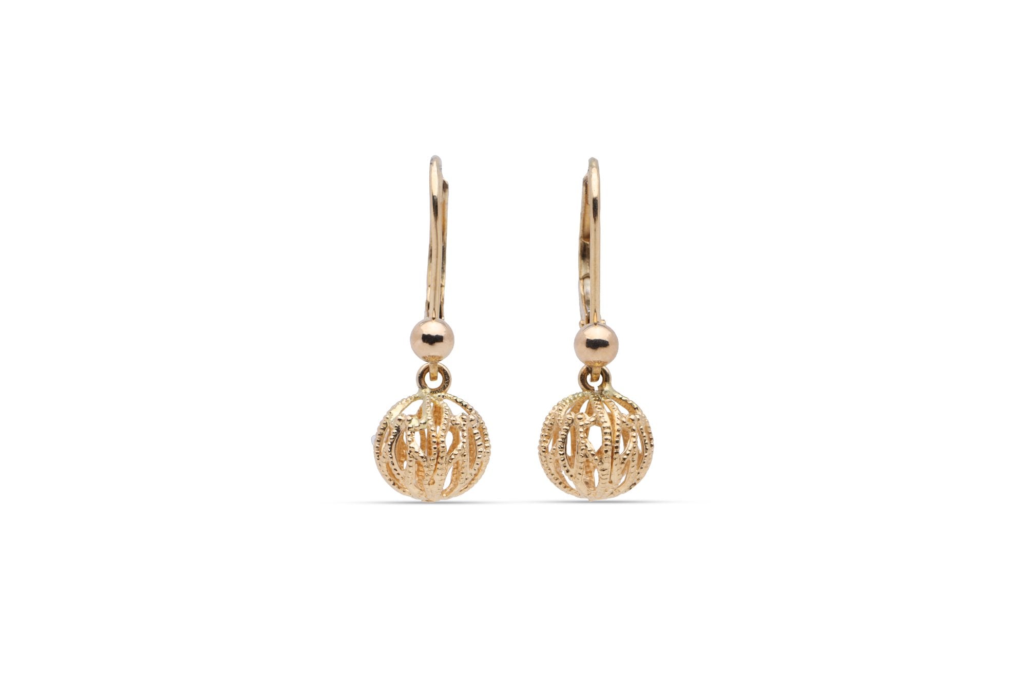 14k Yellow Gold Open Filigree Open Sphere Dangle Lever Back Earrings (1.65g.)