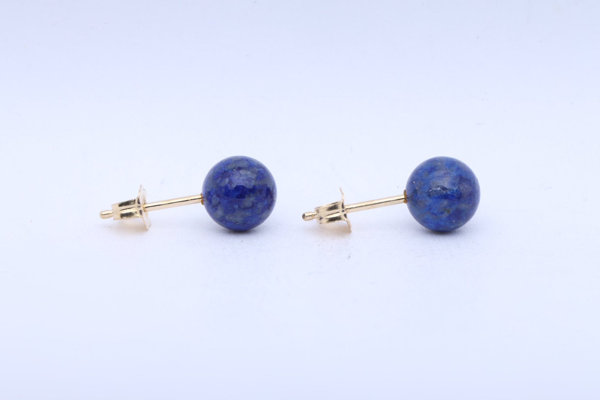 14k Yellow Gold 7mm Deep Blue Lapis Lazuli Ball Stud Earrings (1.40g.)