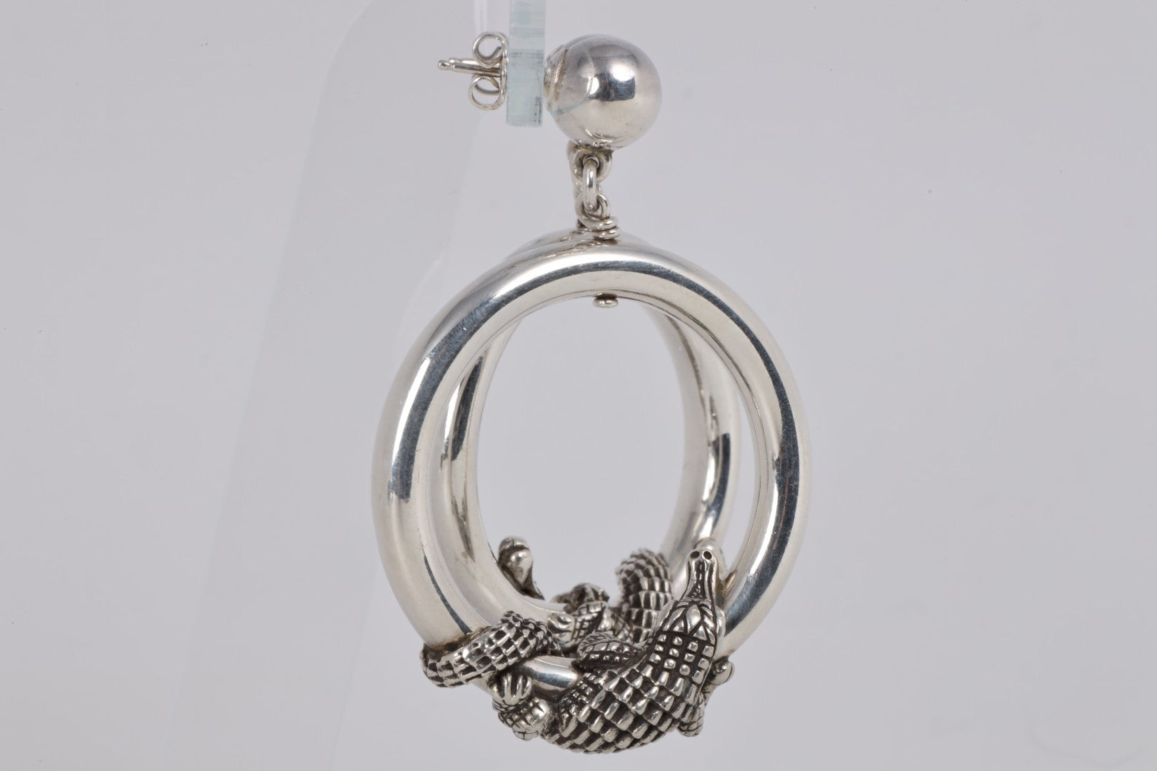 Barry Kieselstein 925 Silver Alligator Wrapped Circle Drop Earrings (23.12g.)