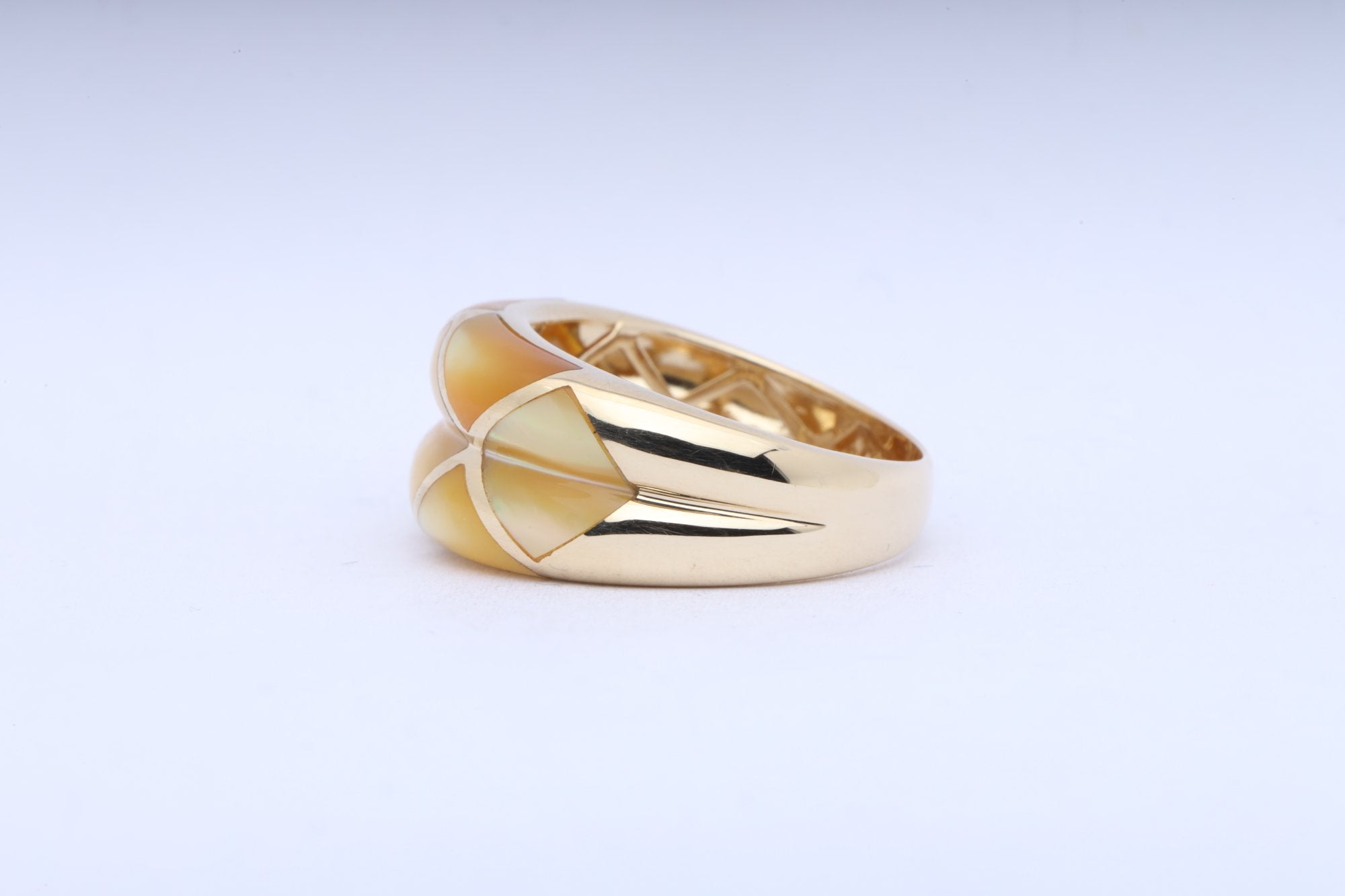 14k Yellow Gold Geometric Yellow Mother of Pearl Inlay Ring Size 7 (4.80g.)