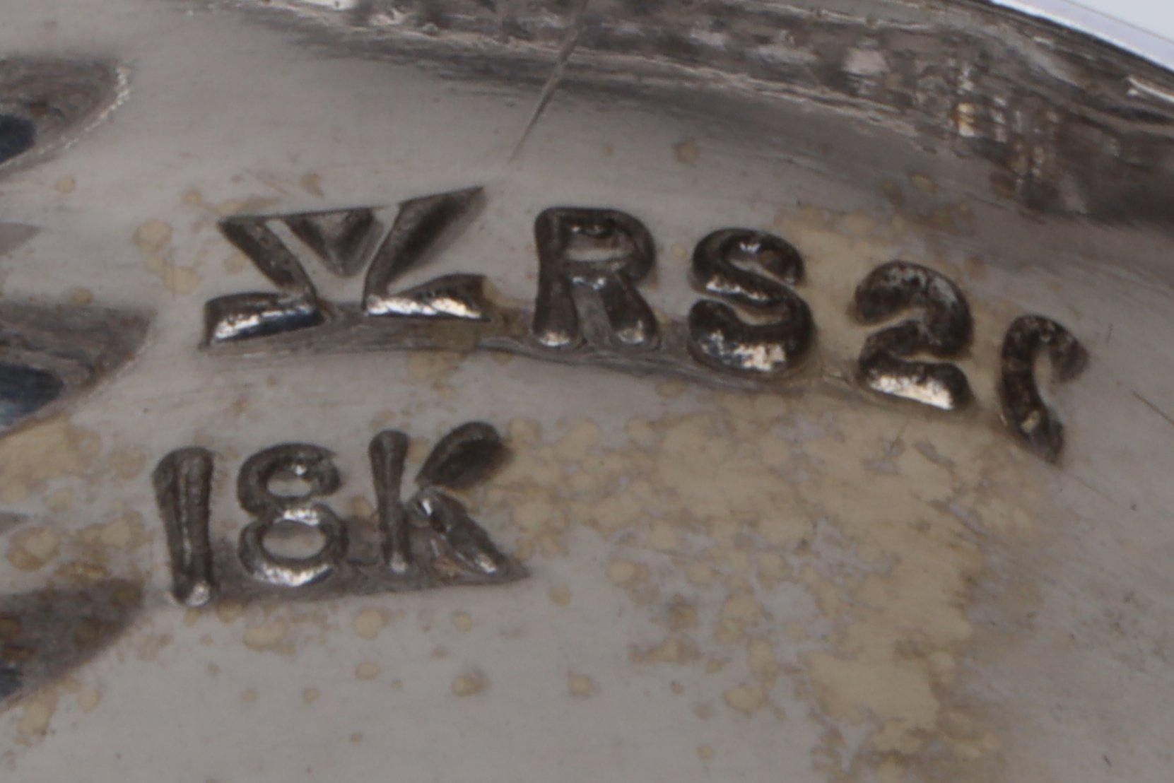 The ring is size 8 and is not resizable. It bears the stamp '18k' and has the inscriptions "LVL' (Le Vian's hallmark), 'RS2C', and '00936'. The dimensions of the ring are 14.50mm in width, and 4.30mm in thickness.