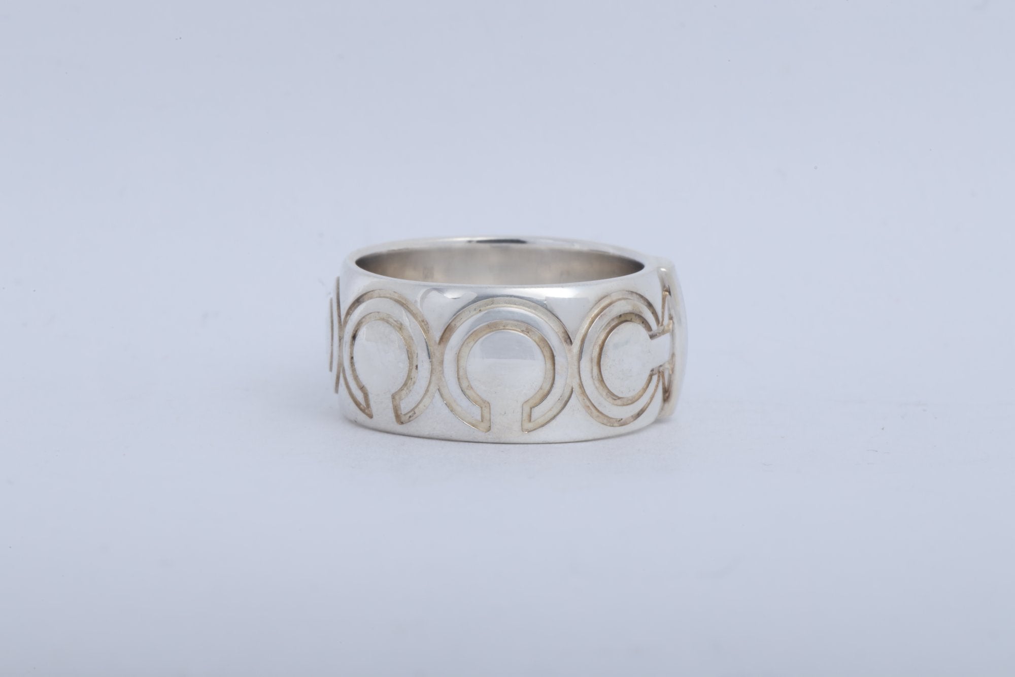Coach 925 Silver 9.5mm Signature C Logo Wide Band Ring Size 7 (9.60g.)