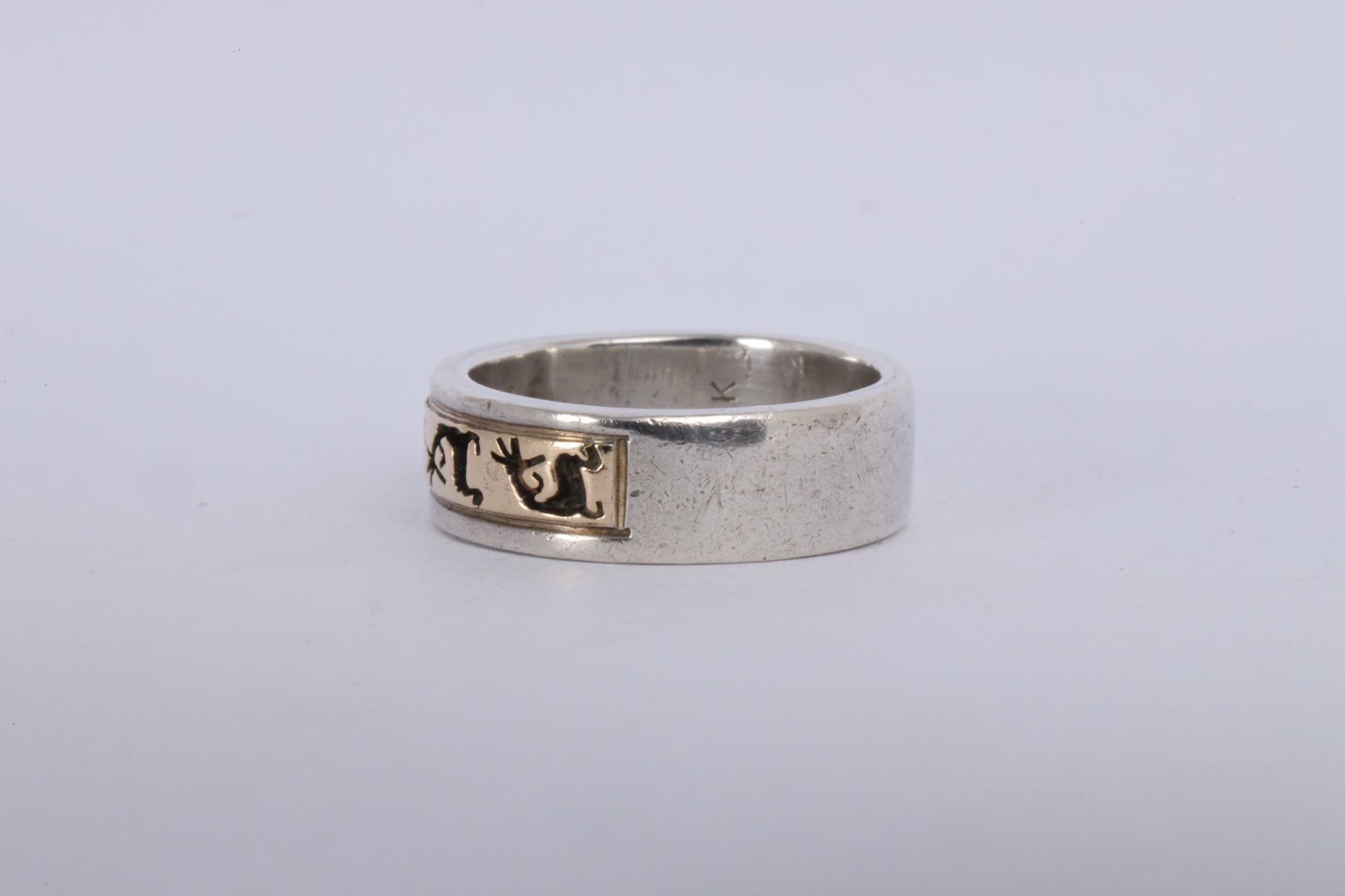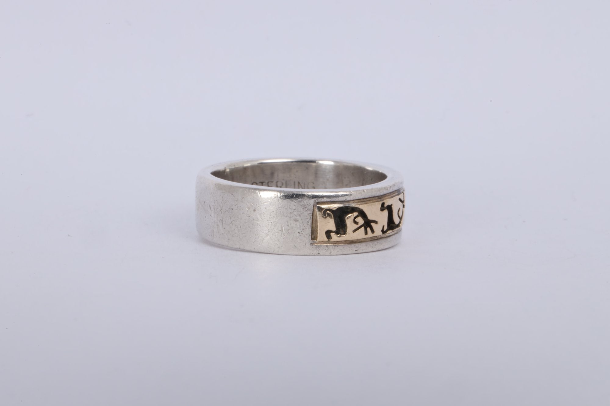 Scott Skeets 925 Silver 14k Yellow Gold Navajo Storyteller Ring Size 5.75 (5.30g.)