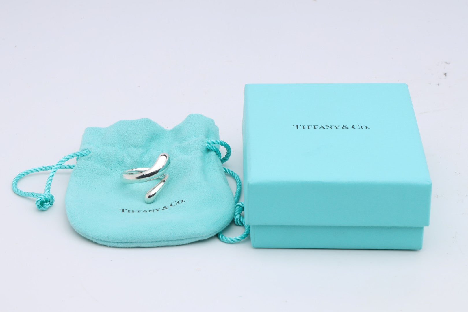 This Tiffany & Co. ring is a beautiful piece from the Elsa Peretti collection. Crafted from sterling silver, the ring features a unique tear drop wrap design that is both elegant and timeless.