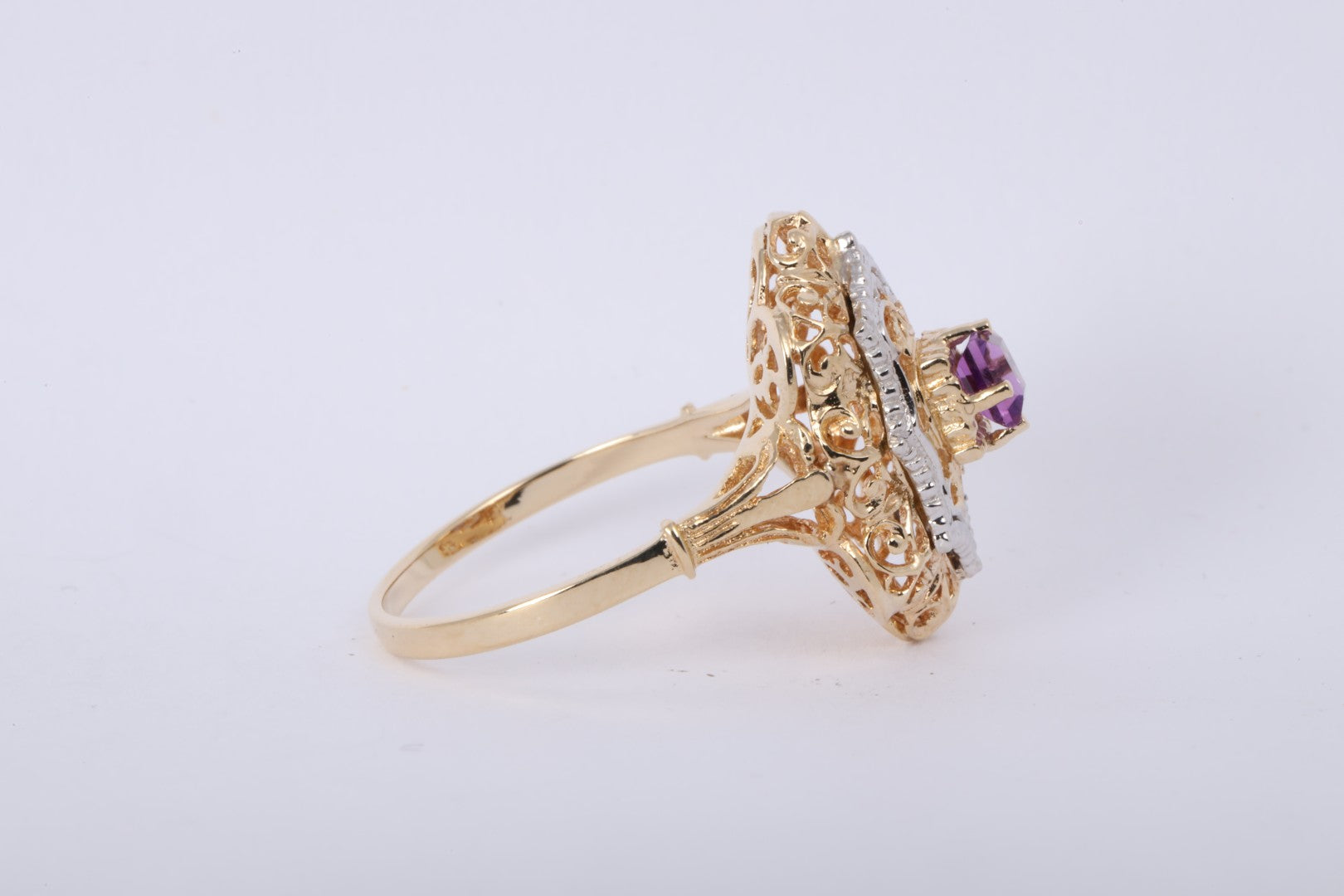 14k Two-Tone Gold 0.40tcw Amethyst Cocktail Ring Size 6.5 (3.64g.)