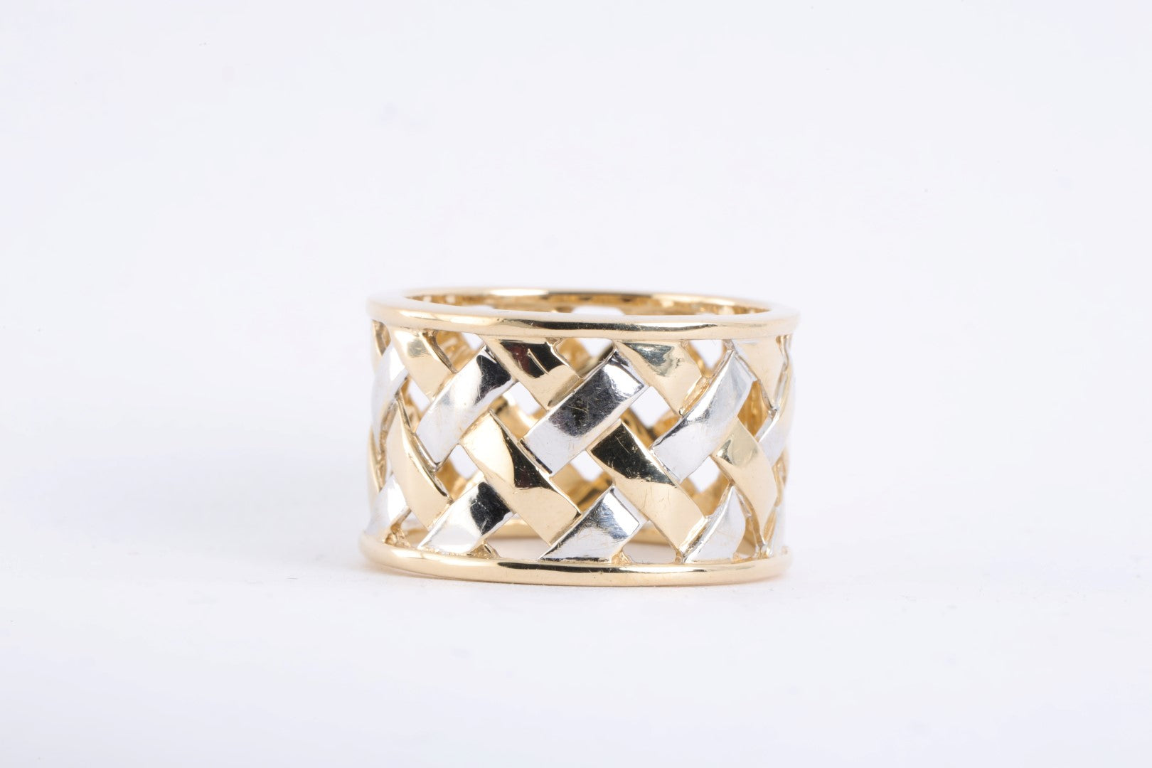 14k Two-Tone Gold Woven Wide Band Ring Size 7.75 (7.50g.)