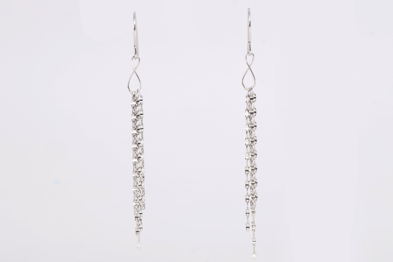 14k White Gold Multi-Strand Mariner Chain Dangle Earrings (1.13g.)