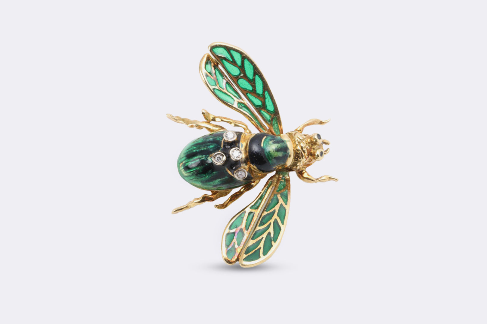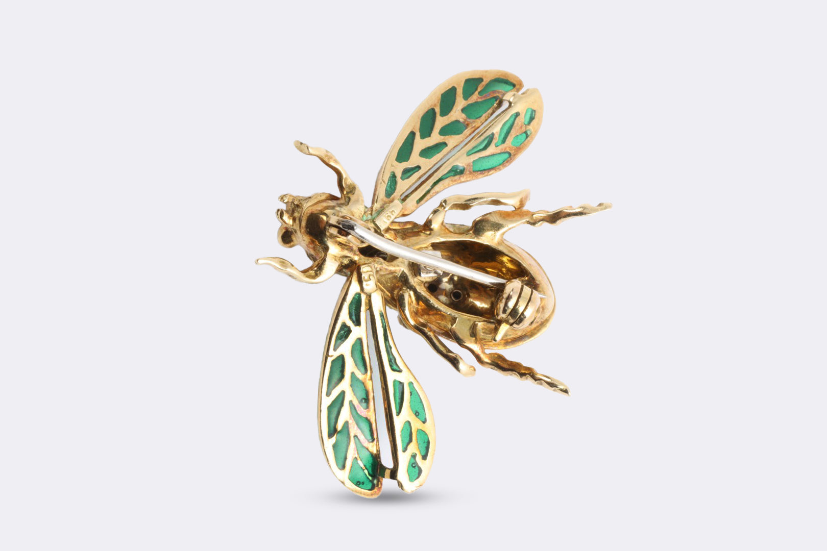14k Yellow Gold 0.02tcw Diamond Enamel Honey Bee Brooch ( 7.66g.)