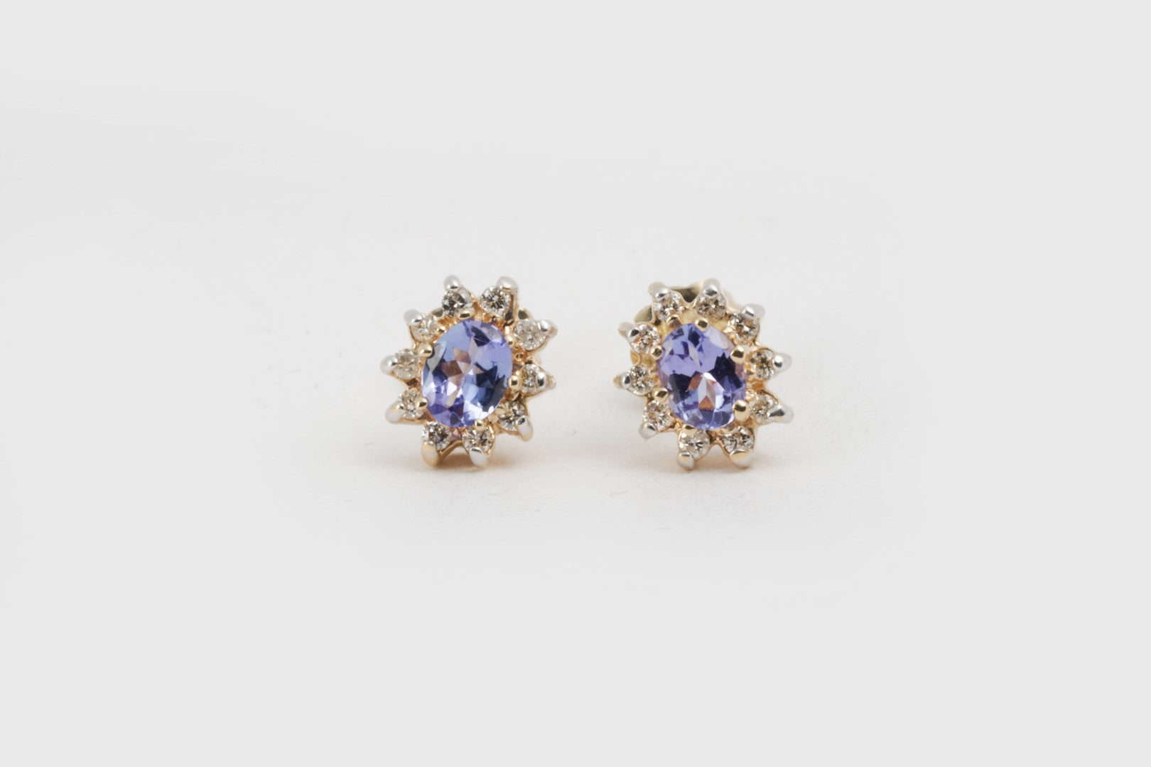 14k Yellow Gold 0.10tcw Diamond 0.68tcw Natural Tanzanite Halo Earrings (2.43g.)