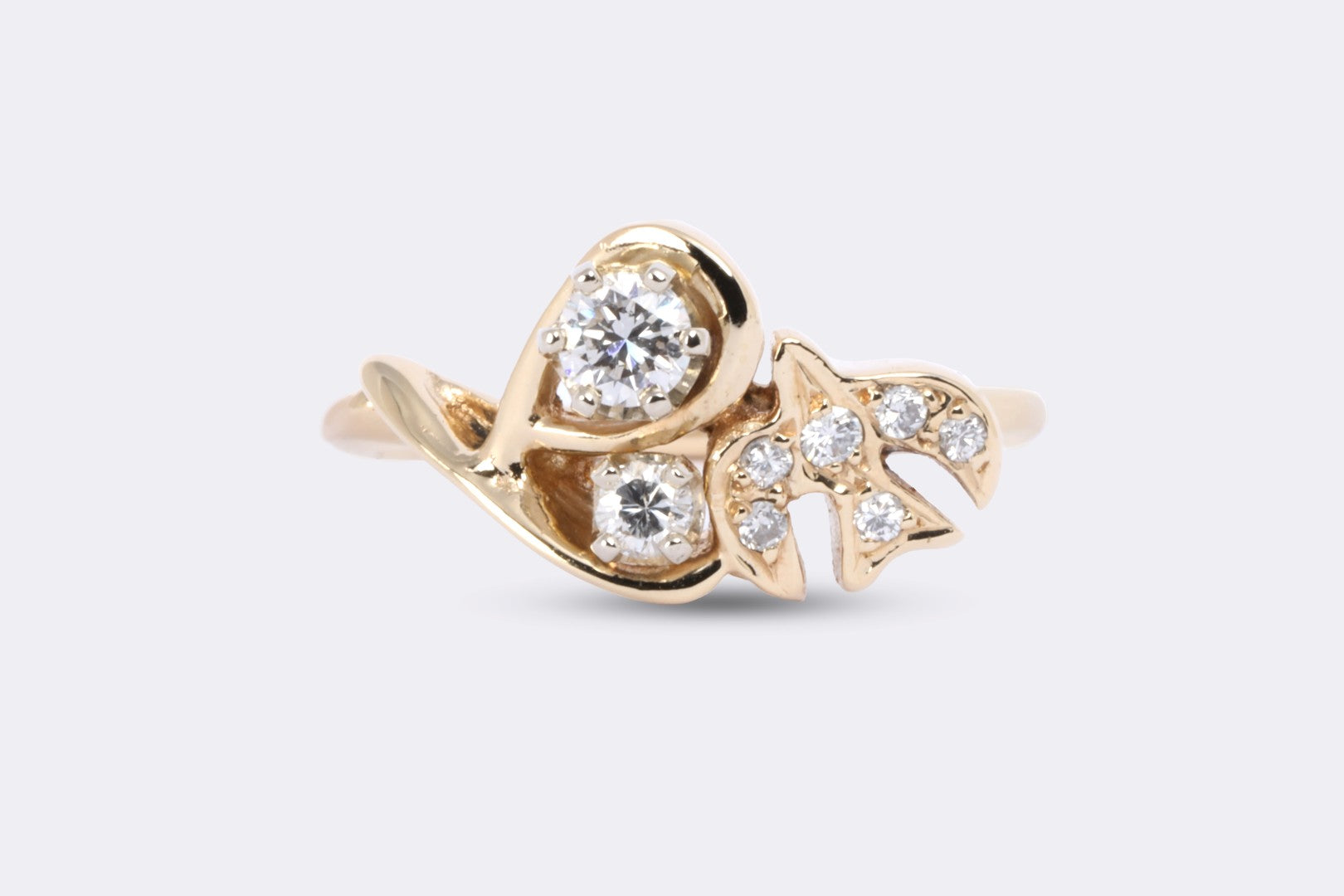 14k Yellow Gold 0.32tcw Diamond Bird Fashion Ring Size 5.25 (4.23g.)
