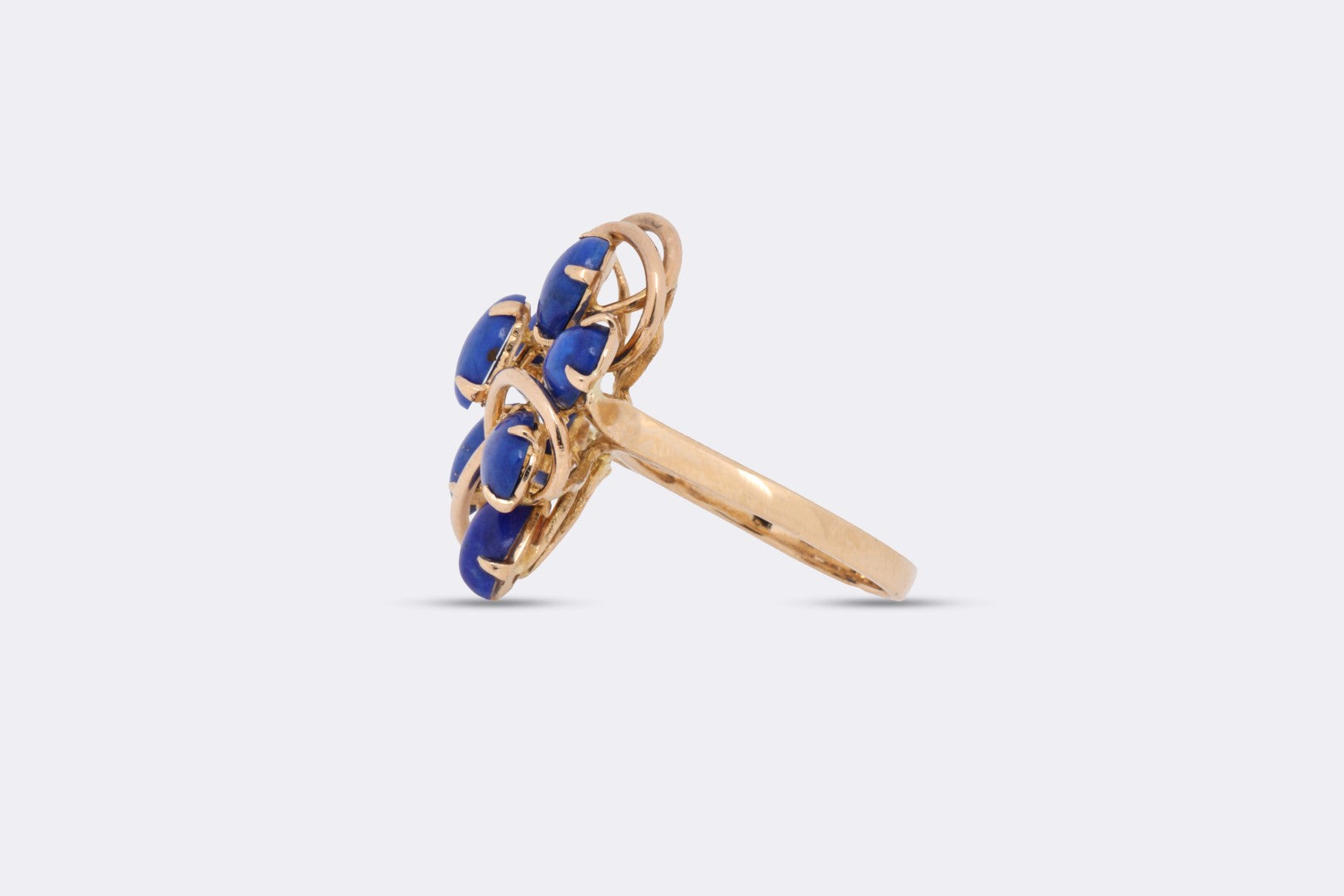 14k Yellow Gold 4.60tcw Lapis Lazuli Cluster Cocktail Ring Size 7 (5.39g.)