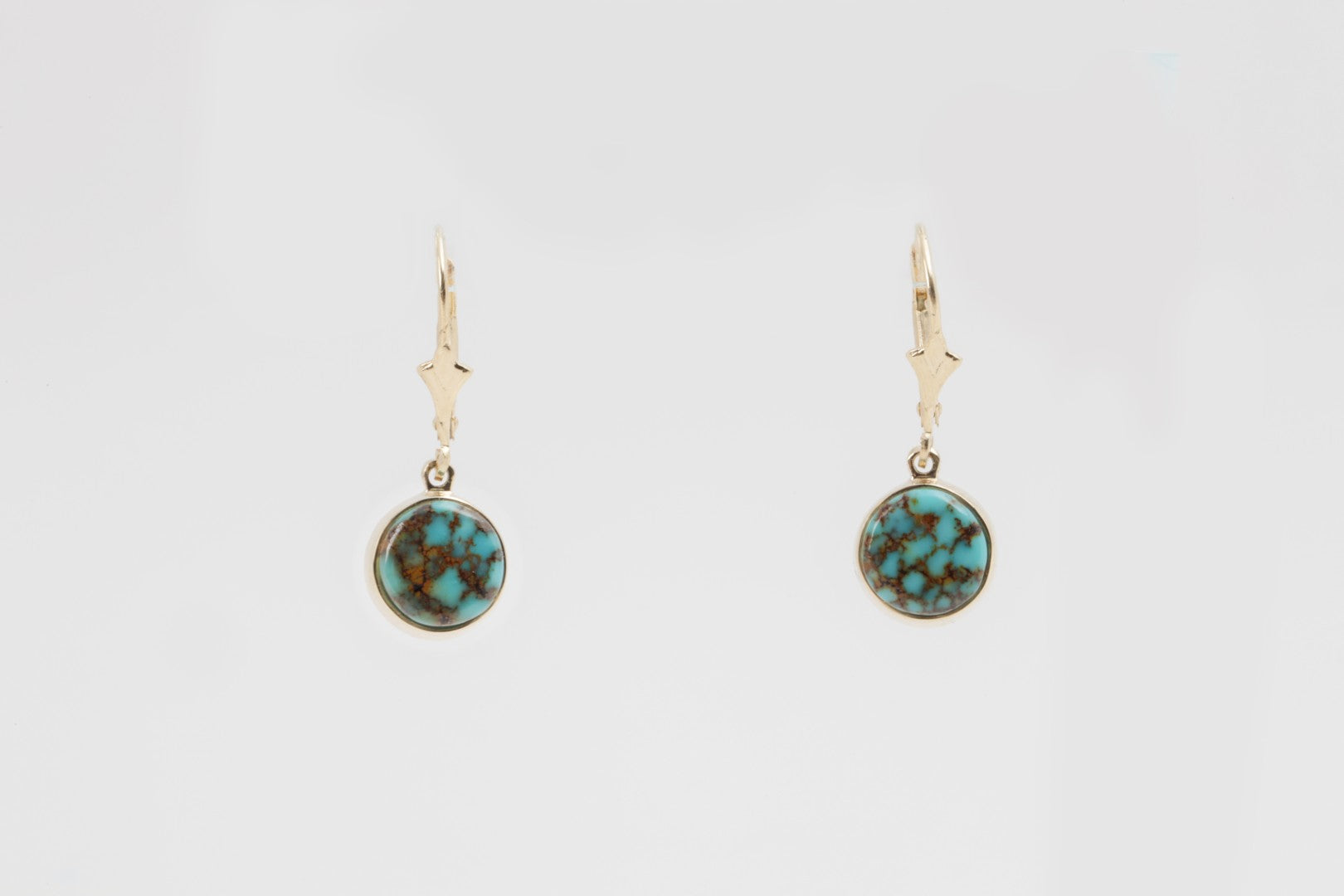 14k Yellow Gold Bisbee Turquoise Inlay Circle Dangle Earrings (3.21g.)