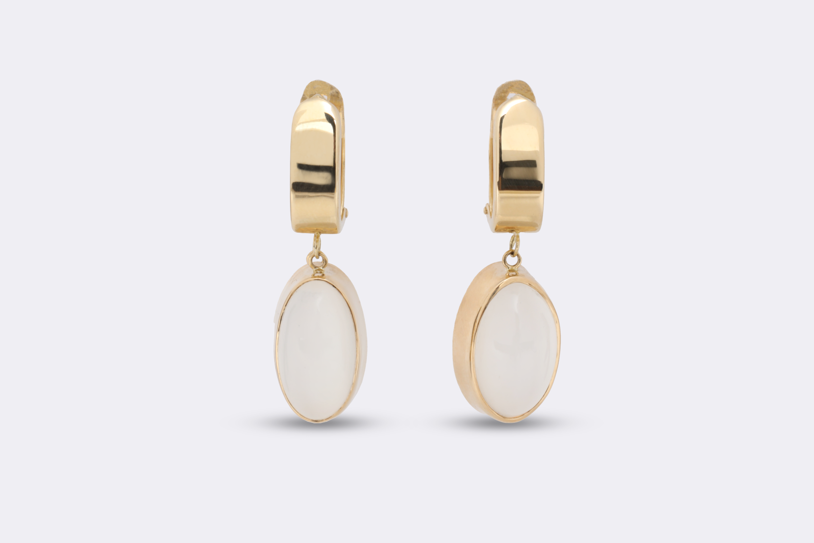 • Gemstones: Synthetic Cats Eye; Total Stones: 2; Oval Cut; Color: White