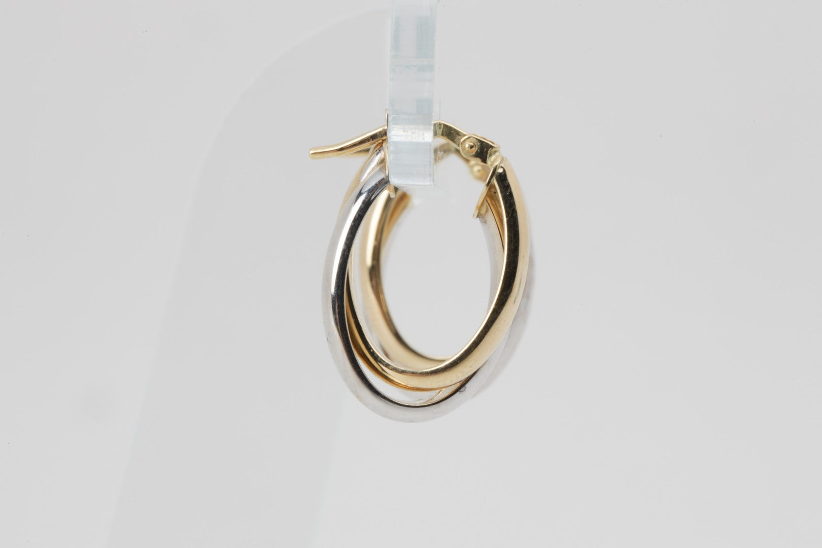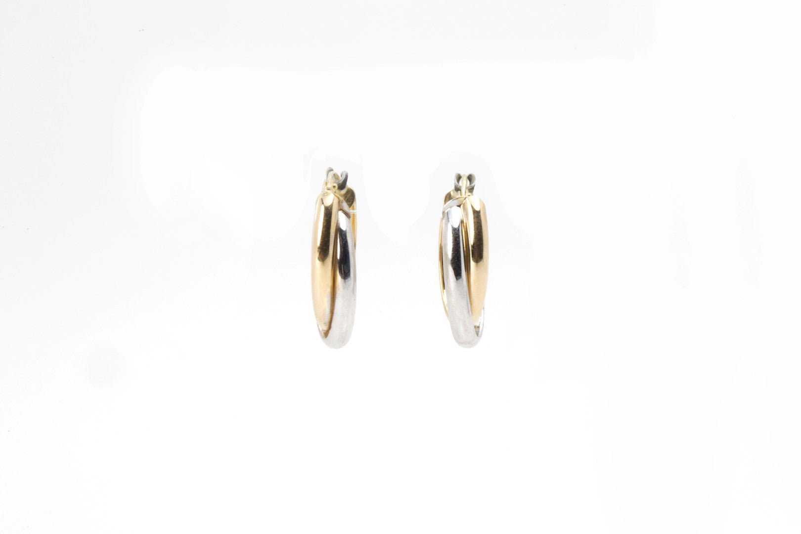 18k Two-Tone Gold Crossover Oval Hoop Earrings (2.01g.)