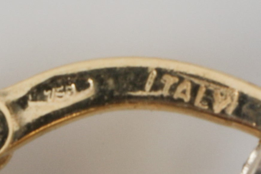 These elegant crossover oval hoop earrings are crafted in 18k yellow and white gold and weigh 2.01 grams. Professionally authenticated and engraved with “JMO” and “ITALY,” they feature secure hinged clasps and a stylish two-tone design. Originally retailing for $520, these earrings add dimension and polish to any fine jewelry wardrobe.