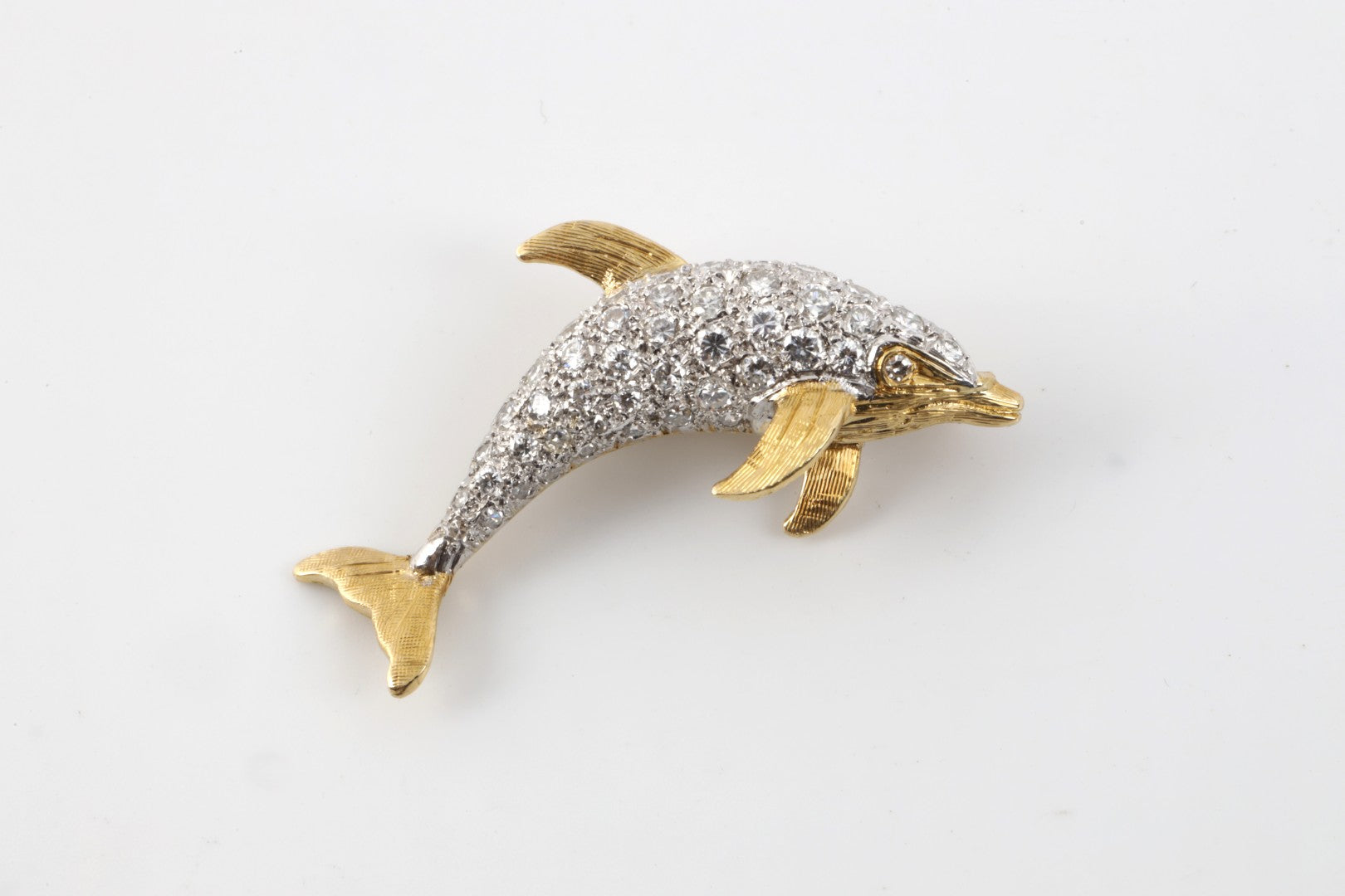 18k Two-Tone Gold 1.09tcw Diamond Dolphin Brooch (7.76g.)