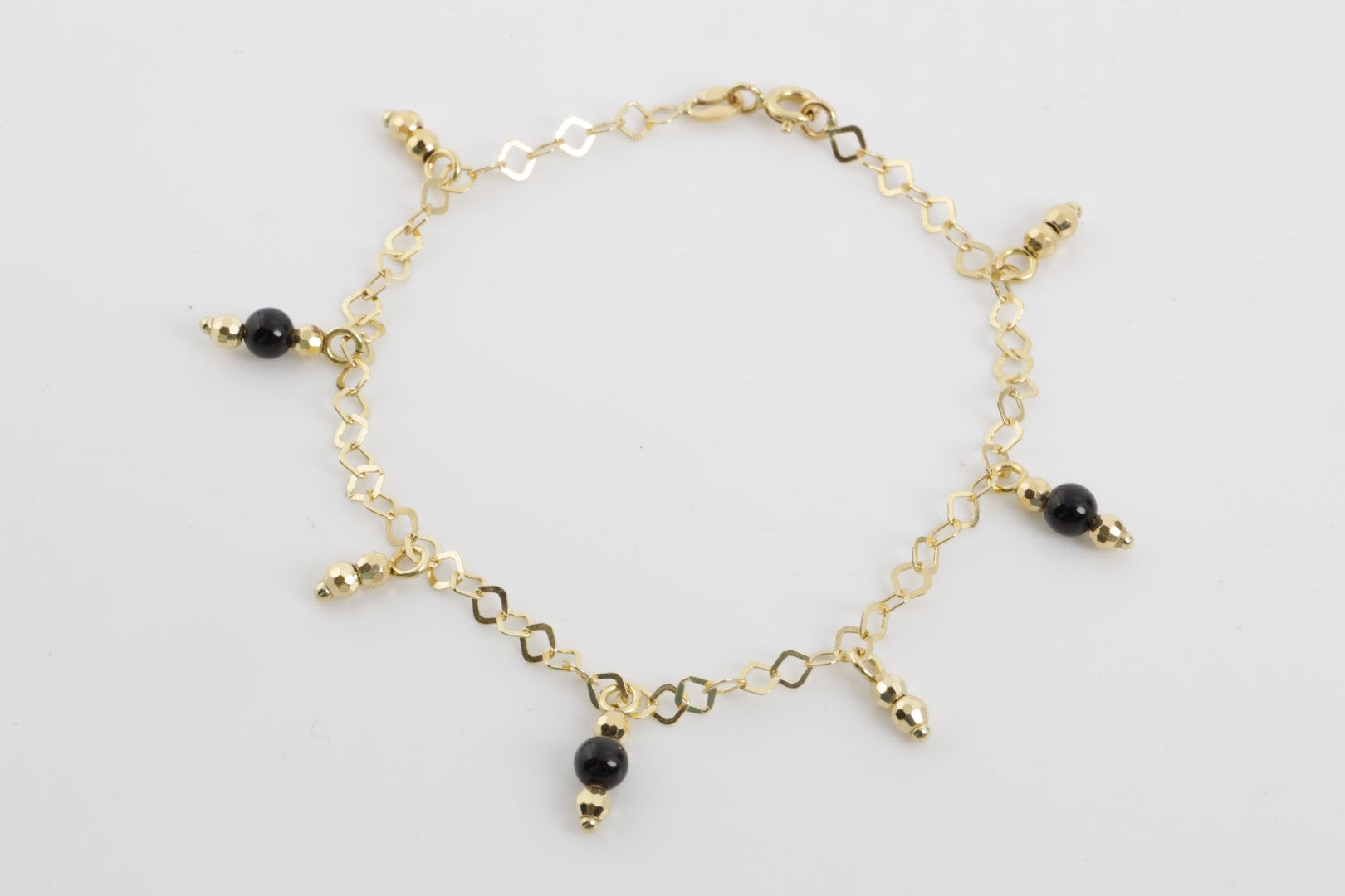 7" 18k Yellow Gold Alternating Beads Dangle Station Bracelet (3.54g.)