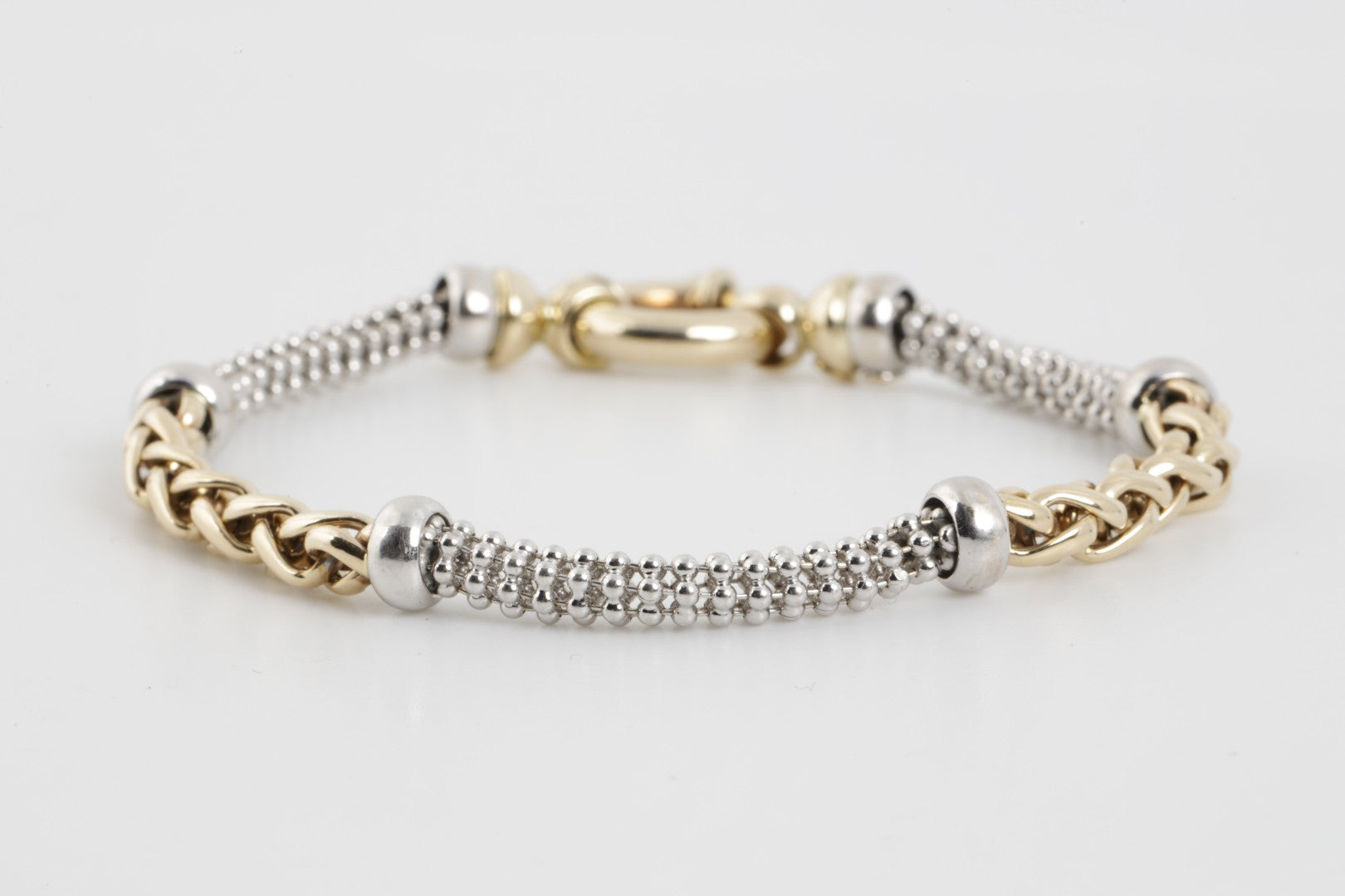 7.5" Aurafin 14k Two-Tone Gold Wheat & Ball Chain Bracelet (13.31g.)