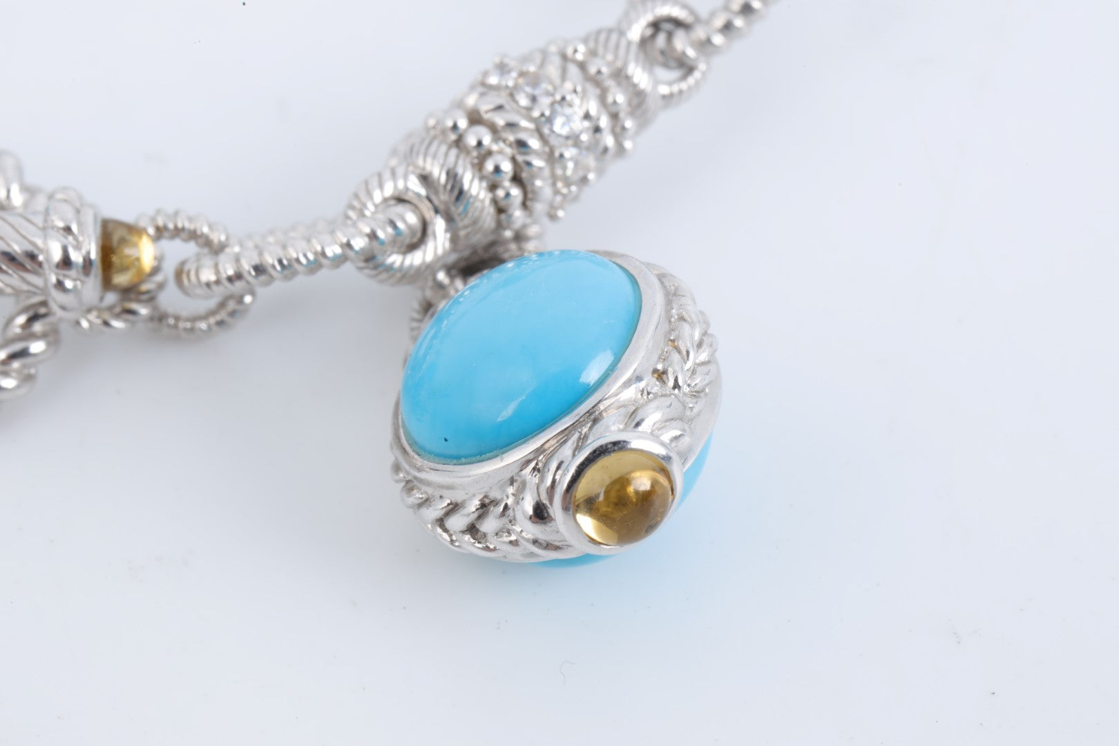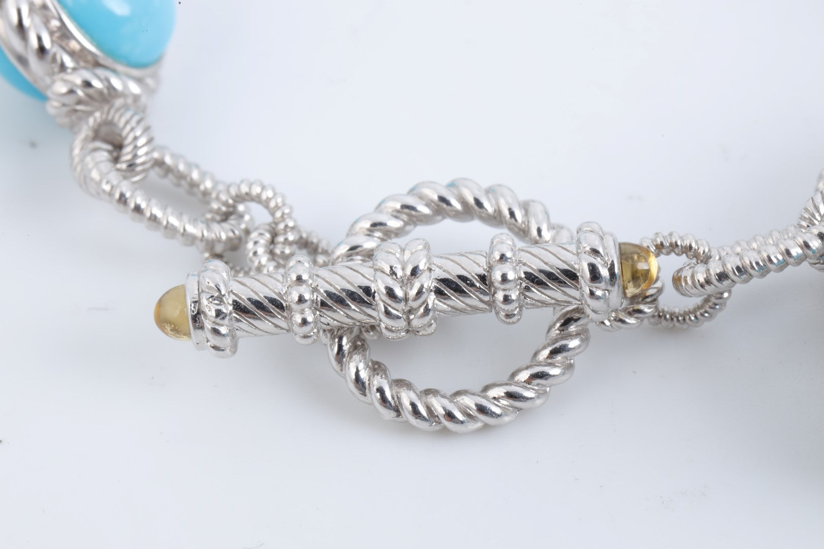 7.5" Judith Ripka 925 Silver Turquoise Bracelet (35.17g.)