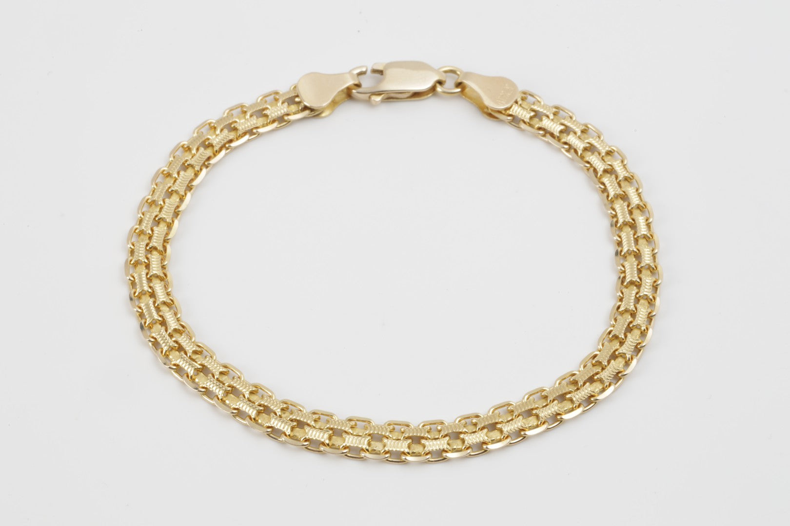 7.5" 14k Yellow Gold Flat Textured Link Bracelet (8.50g.)