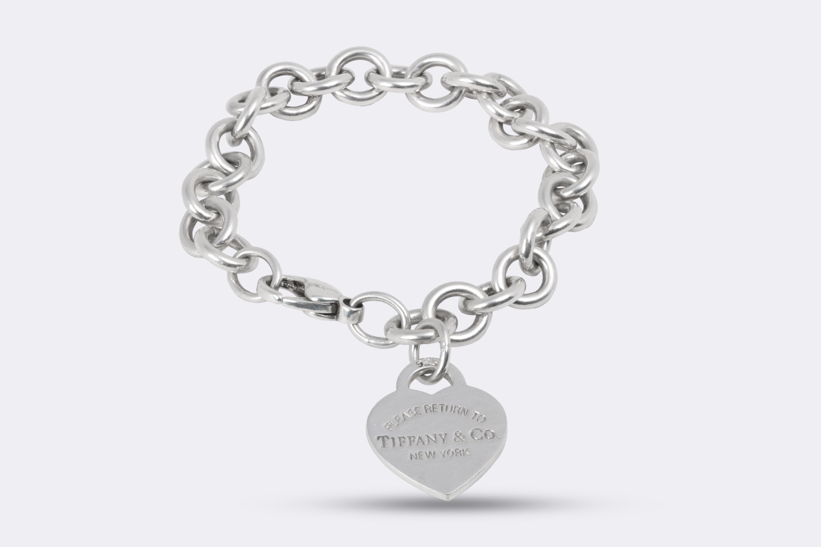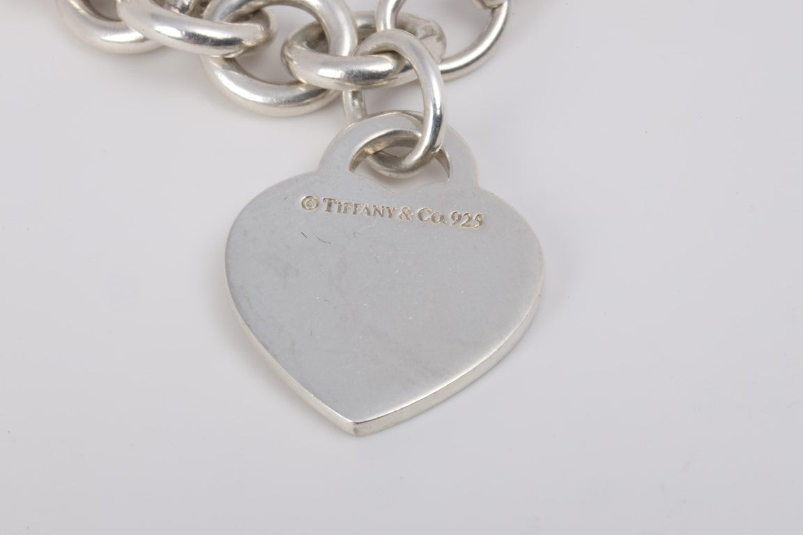 This iconic Tiffany & Co. "Return to Tiffany" charm bracelet is a bold and elegant piece, crafted in solid 925 sterling silver. Featuring the signature heart tag charm engraved with the classic Tiffany logo, it captures timeless style and luxury. The bracelet is stamped “925,” includes the Tiffany maker’s mark, and secures with a sturdy lobster clasp. Measuring 7.5 inches in length, it ranges from 11.00mm to 20.70mm in width, with a thickness of 2.15mm. Weighing 36.40 grams, this piece originally retailed for $625 and is a staple in any fine jewelry collection.