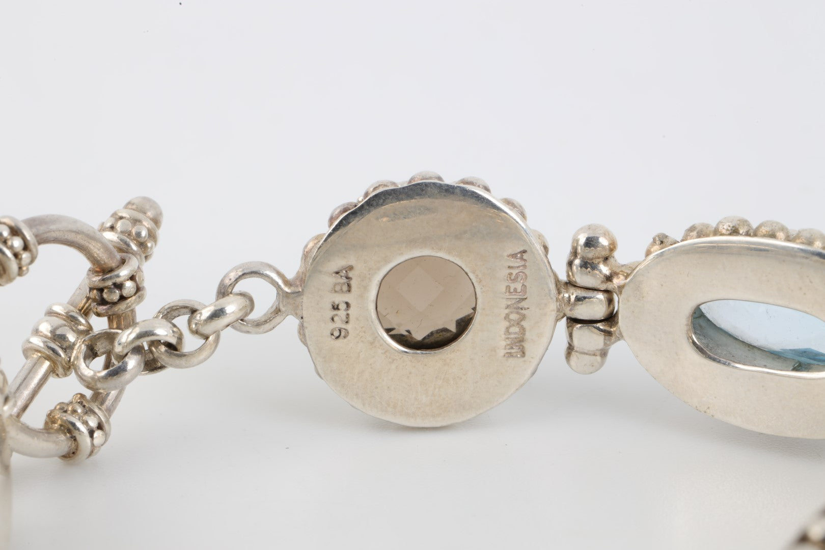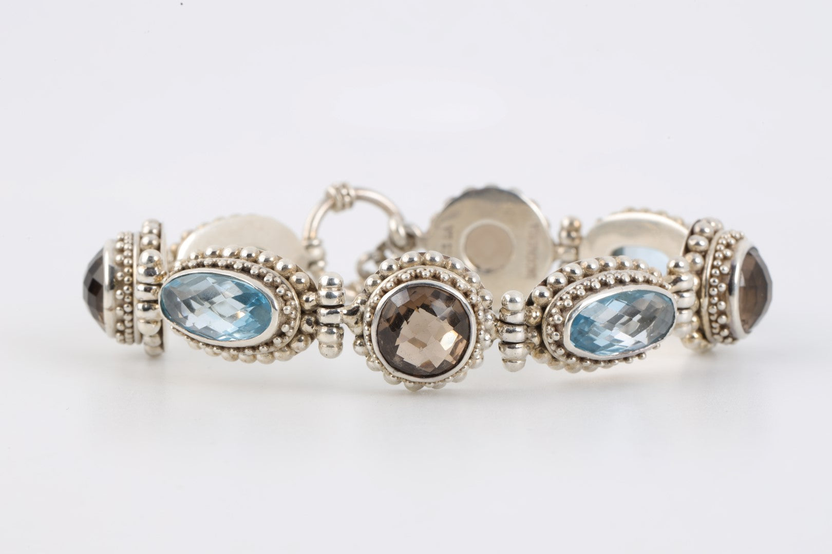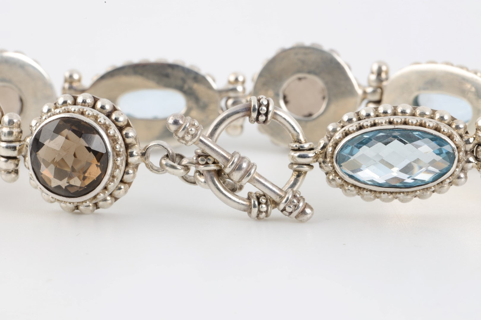 7" 925 Silver Smoky Quartz Blue Topaz Toggle Bracelet (41.65g.)