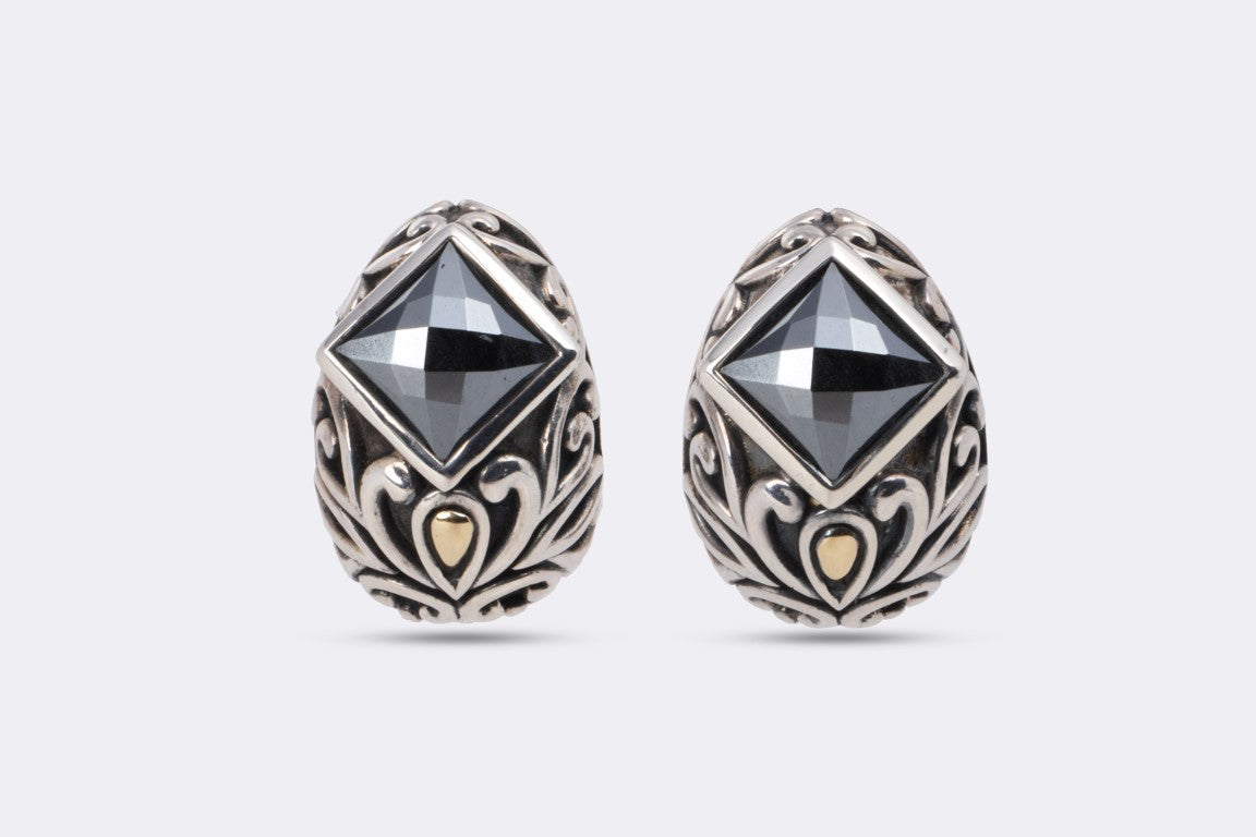 John Hardy Angela Silver & 14k Yellow Gold Black Onyx Earrings (16.05g.)