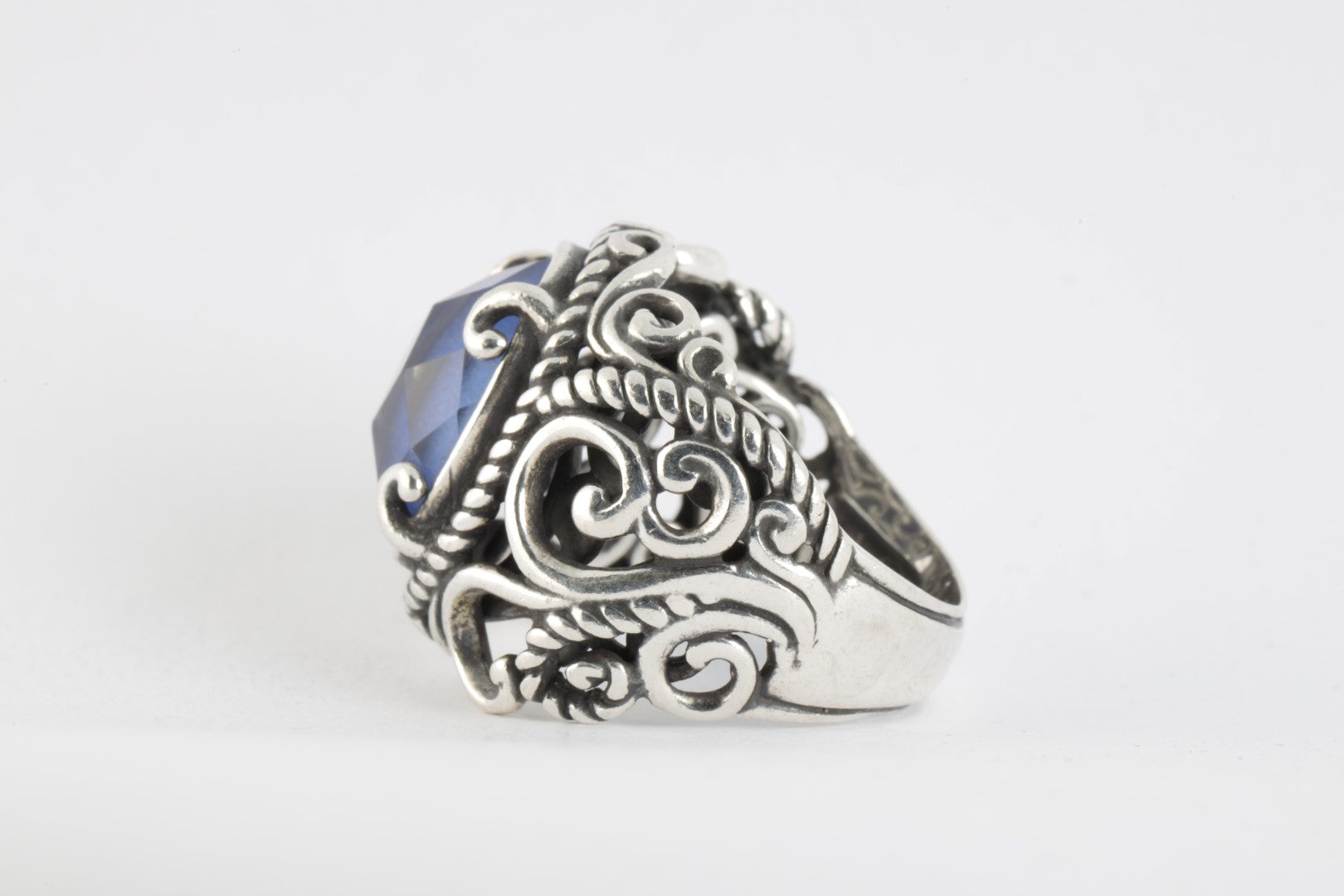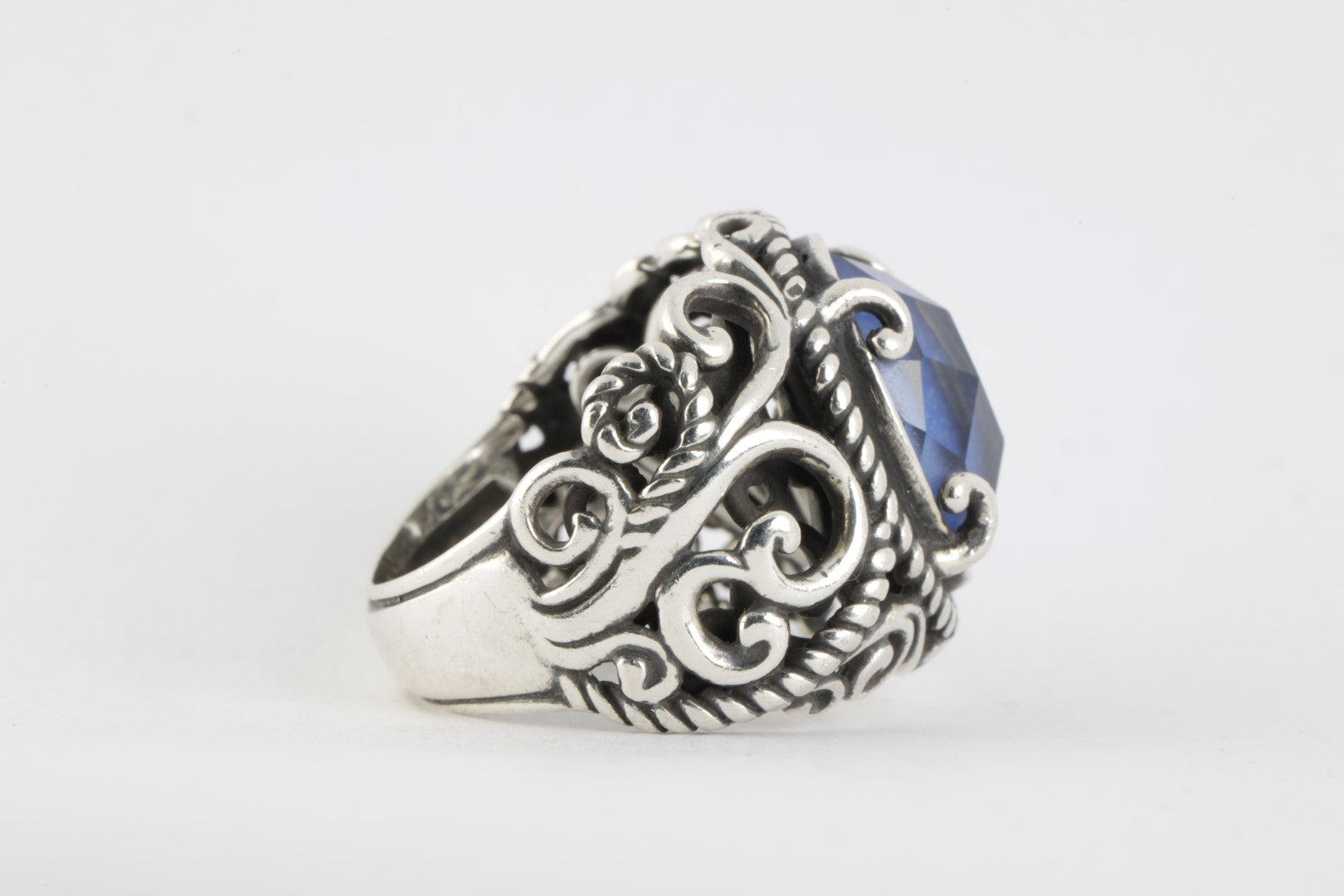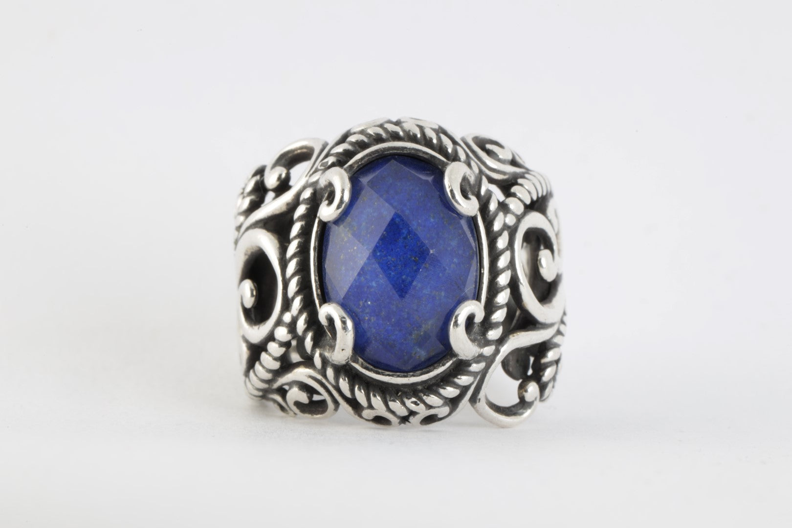 Carolyn Pollack 925 Silver Lapis Lazuli Scroll Dome Ring Size 7 (9.89g.)