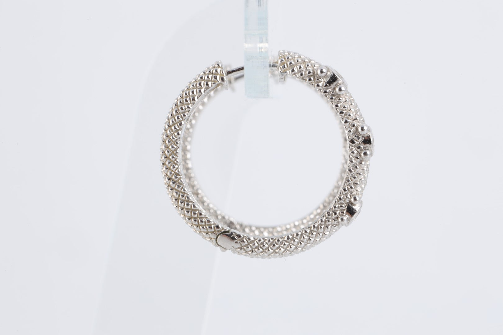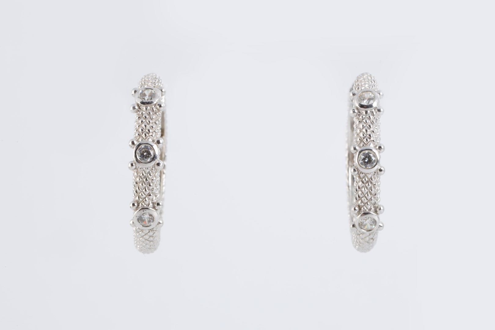 Judith Ripka 925 Silver Cubic Zirconia Textured Hoop Earrings (7.66g.)