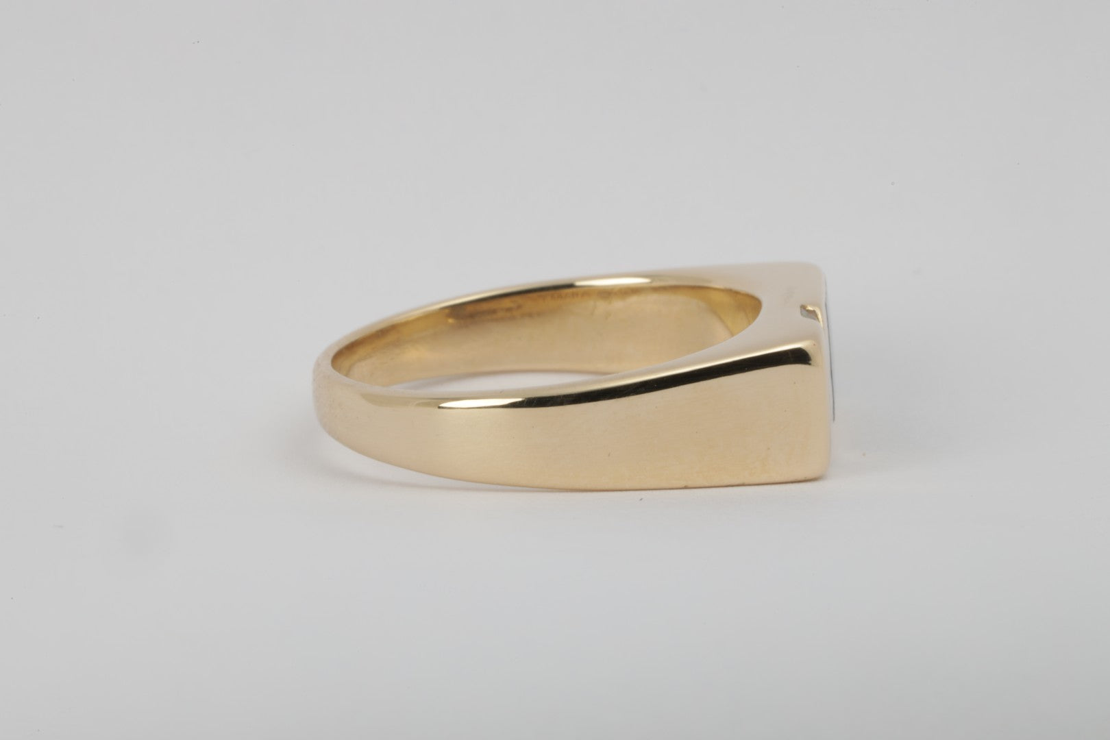 In very good condition (8/10), this original ring shows visible scratches on the onyx inlay. It is not resizable and does not come with box, papers, or receipt.