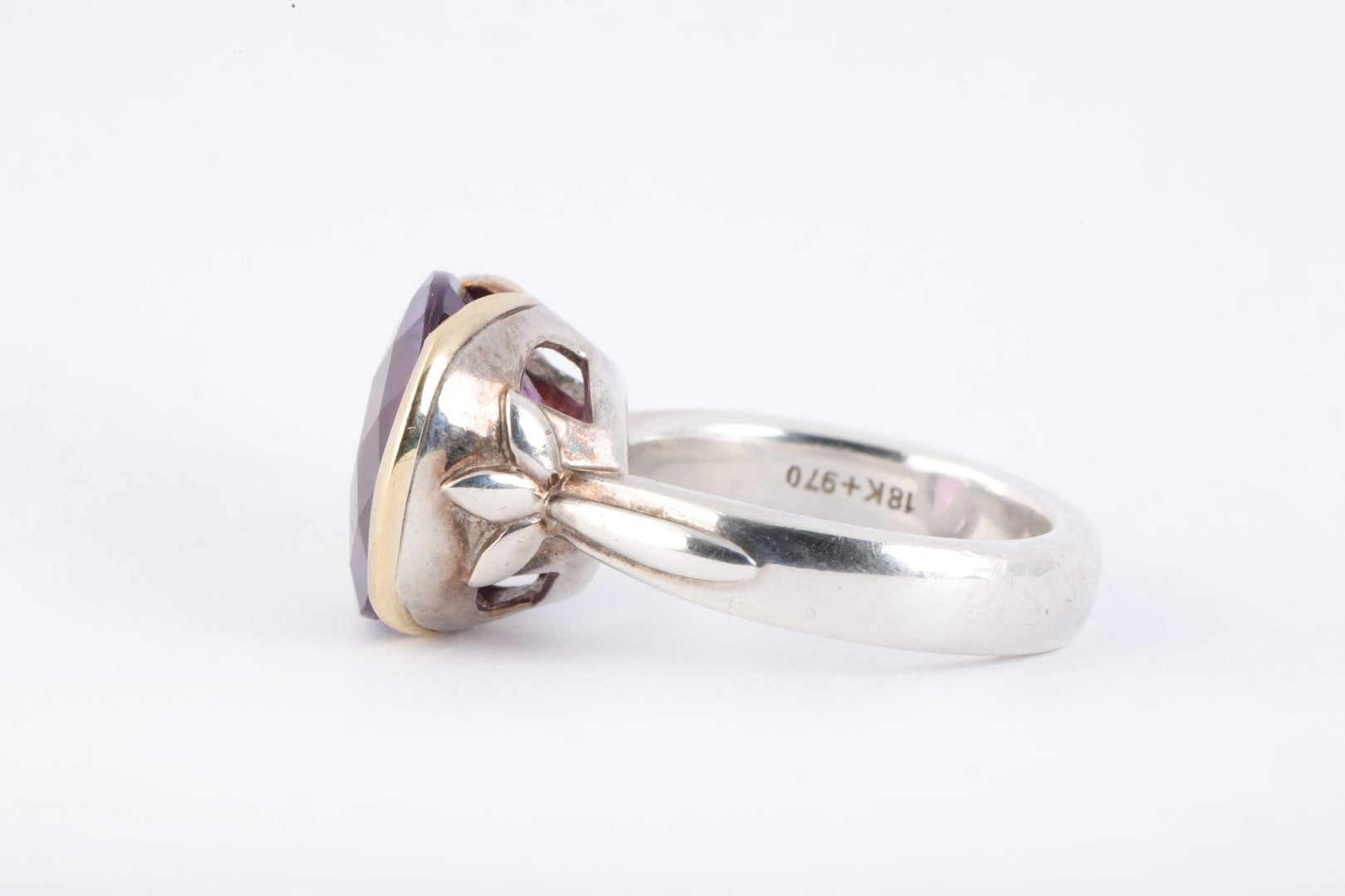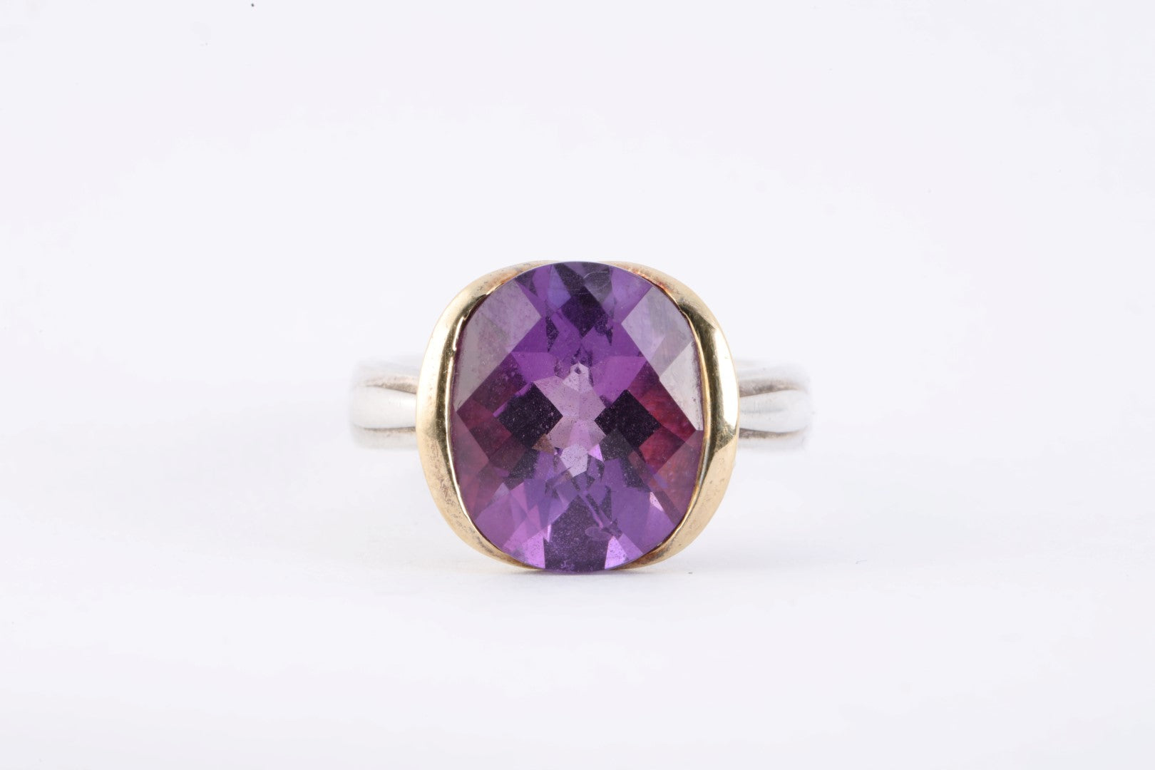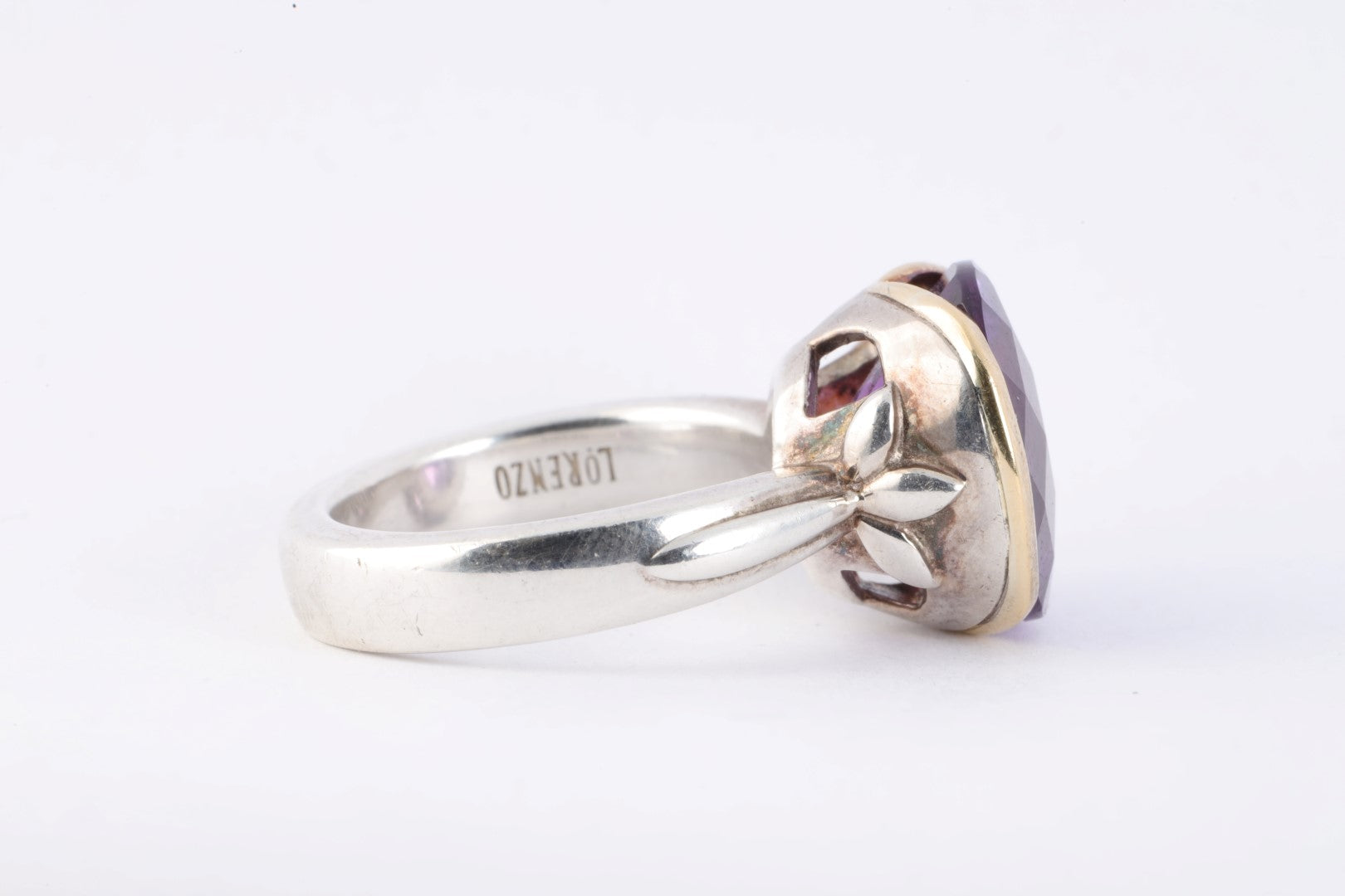 Lorenzo 925 Silver & 18k Yellow Gold 16.08tcw Amethyst Ring Size 7 (10.38g.)