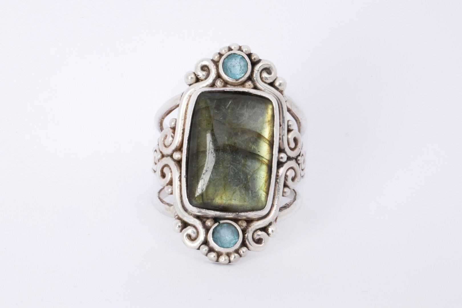 Sajen 925 Silver Labradorite Statement Ring Size 9 (14.03g.)