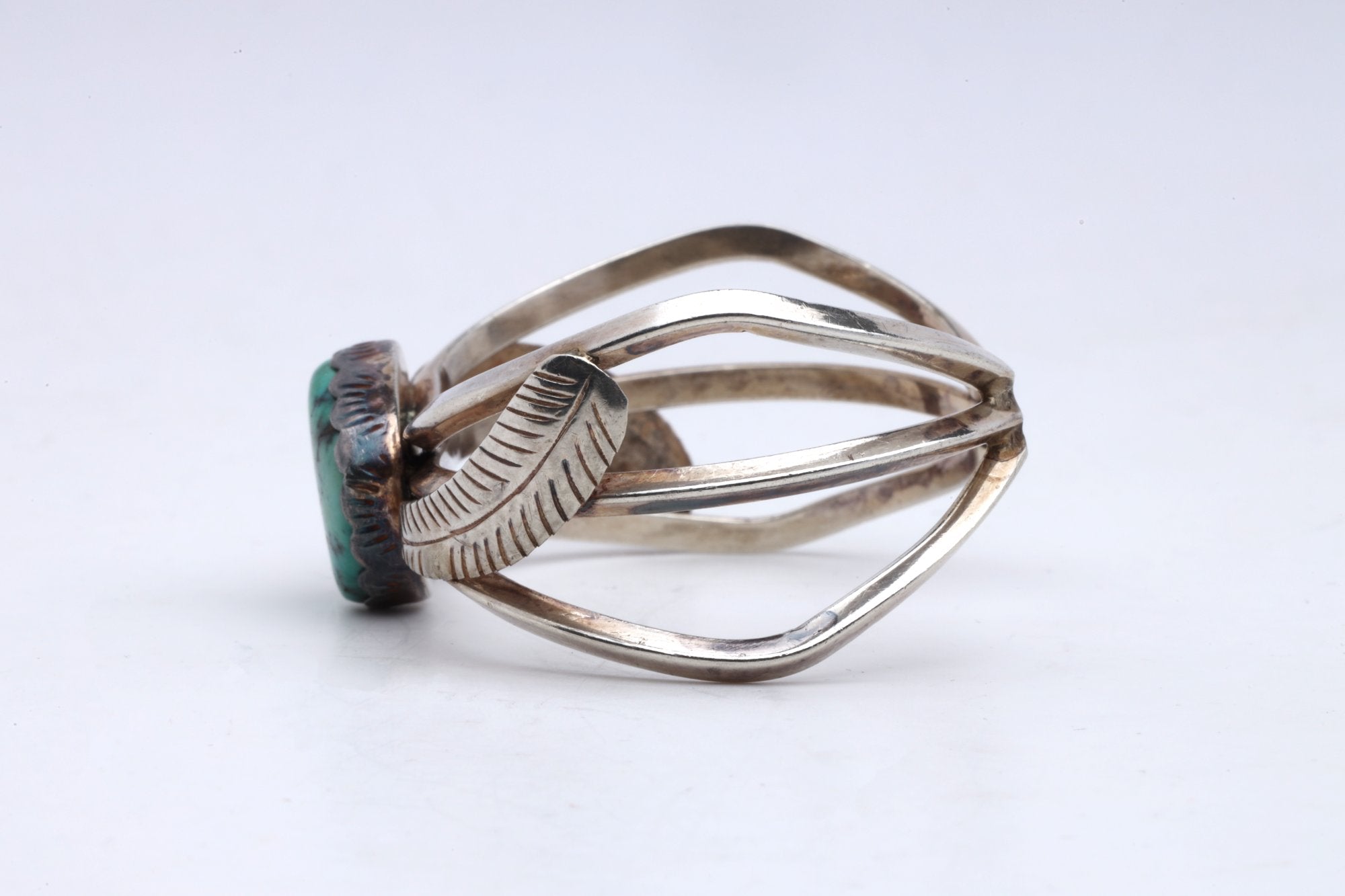 6'' 925 Silver 4.99ctw Turquoise Navajo Native Leaf Cuff Bracelet (27.20g.)