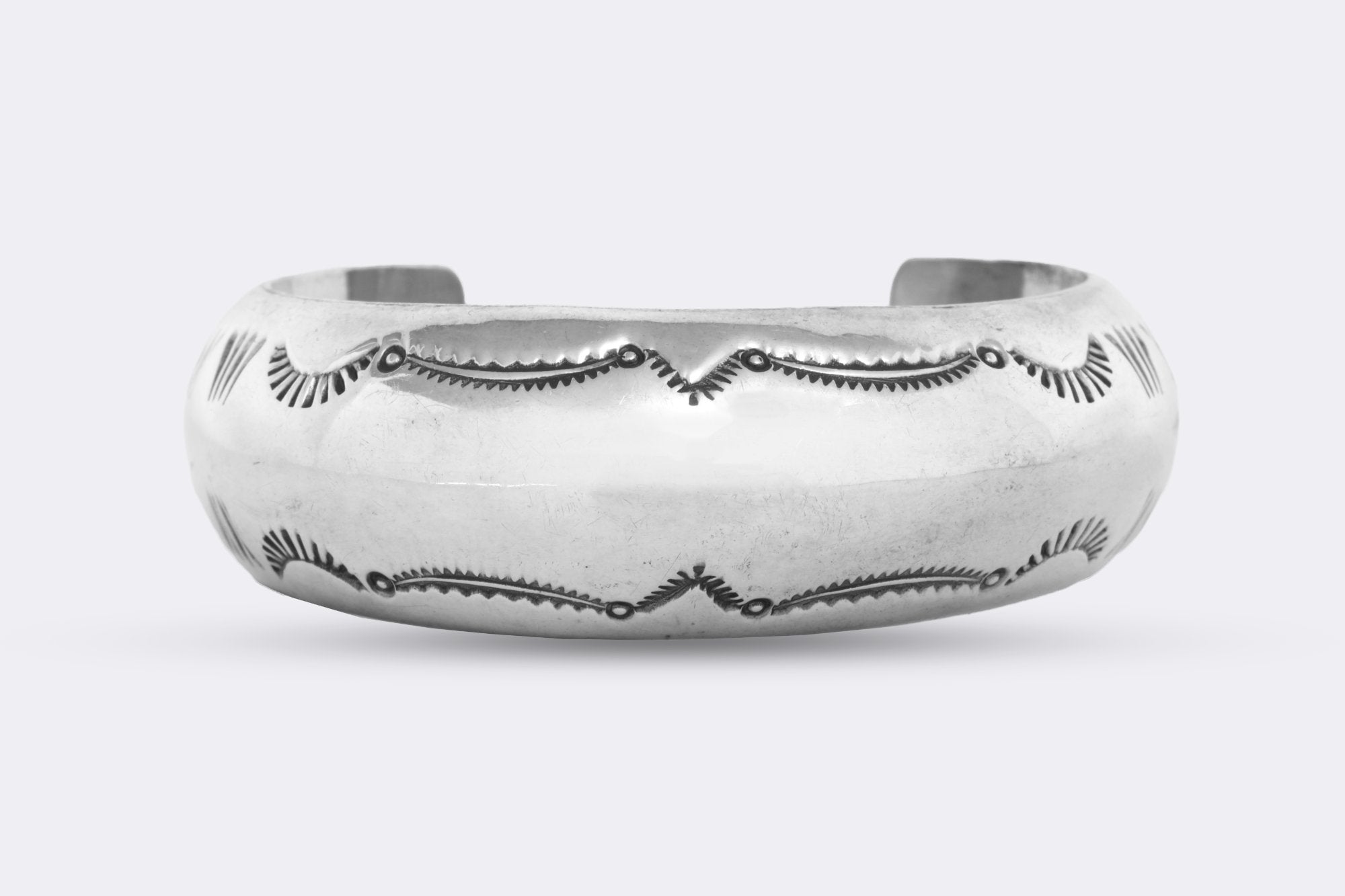 6'' 925 Silver Navajo Native Hand Stamped Bubble Cuff Bracelet (47.65g.)