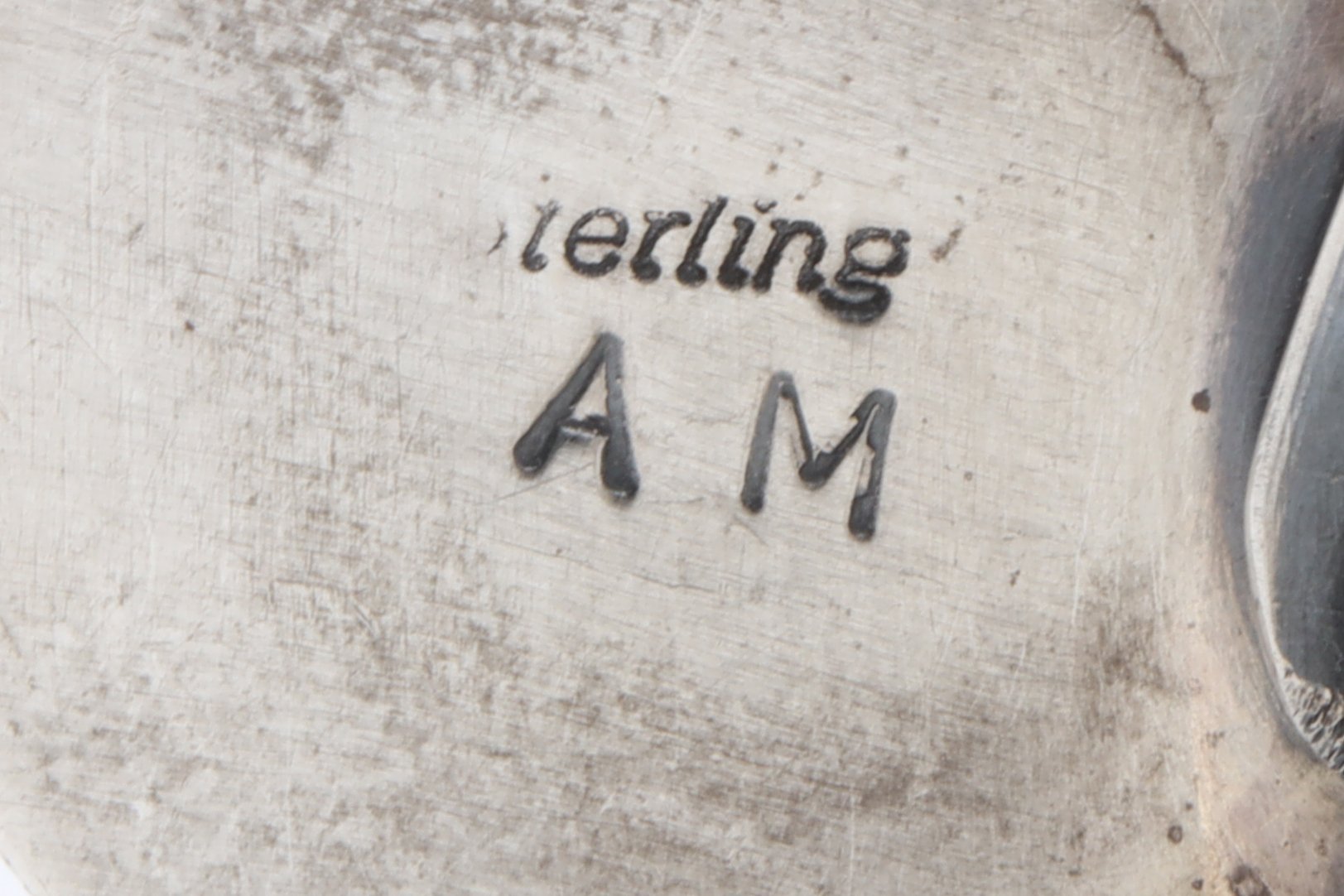 The ring is resizable, allowing for a perfect fit. It bears the inscription 'AM', a mark of its authenticity. Despite slight signs of wear, the ring is in excellent condition, reflecting its well-preserved nature.
