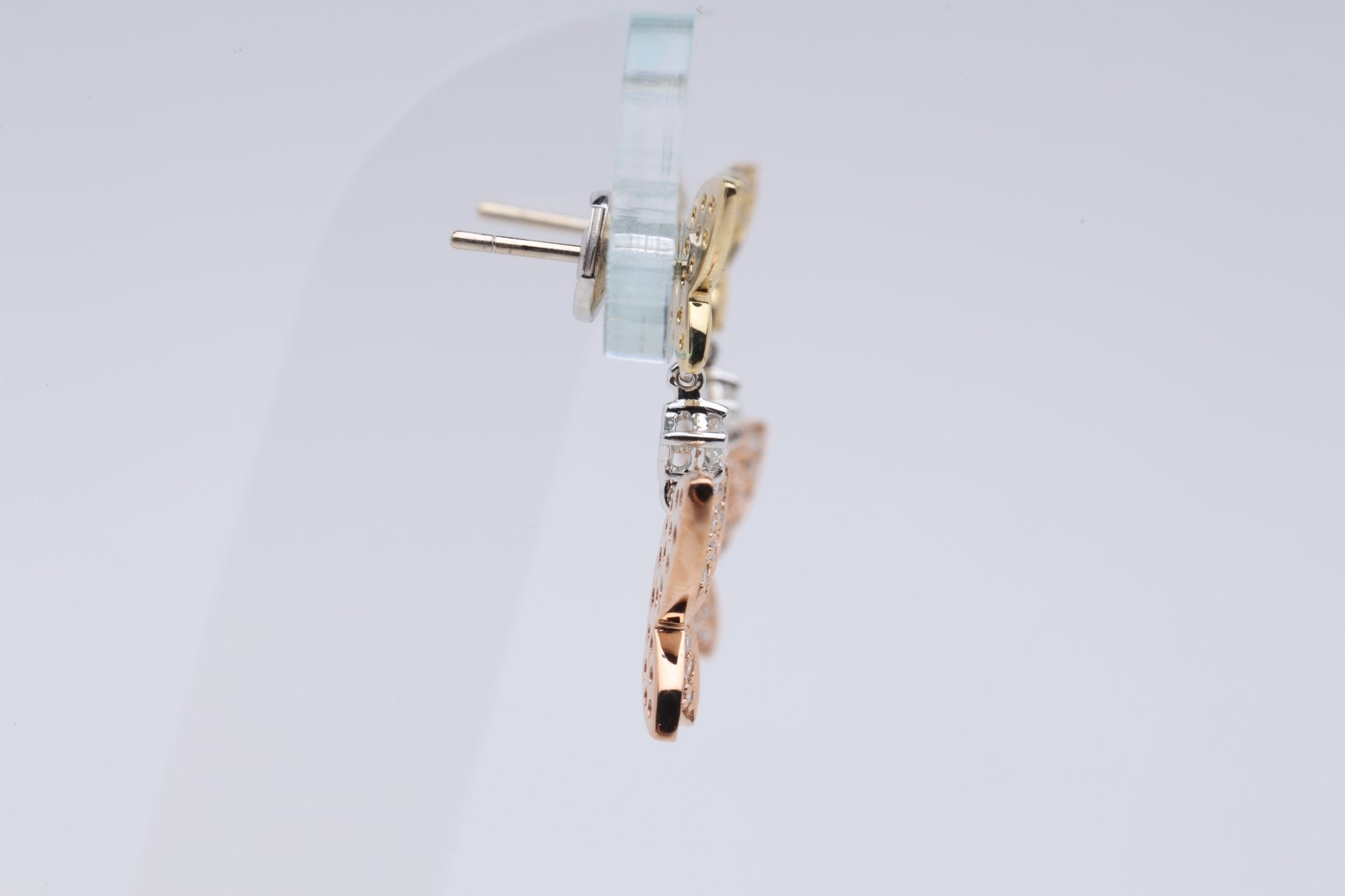 18k Tri-Color Gold 0.66ctw Diamond Pave Butterfly Dangle Earrings (5.70g.)