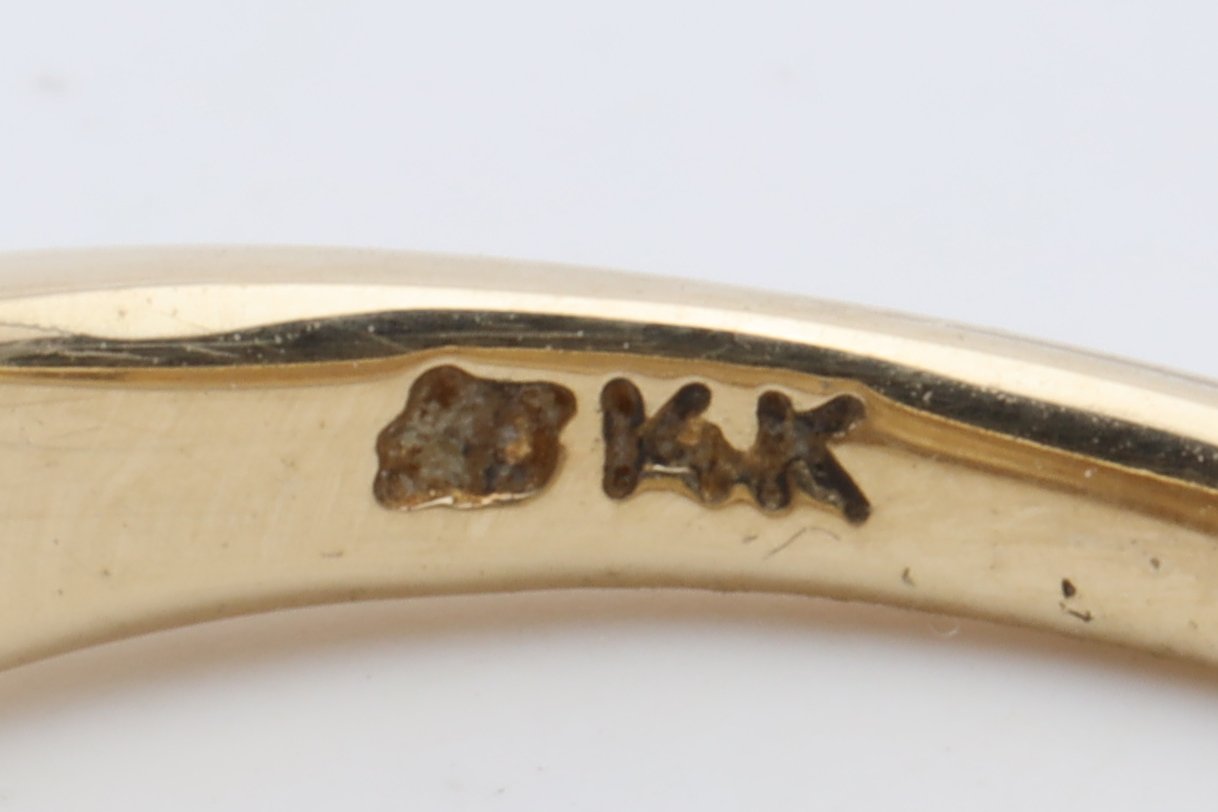 This 14k Yellow Gold Dome Ring is a classic piece that exudes timeless elegance. The ring is size 7 and has a weight of 3.20g. It is marked with the stamp '14k' and the maker's mark, indicating its authenticity and quality.