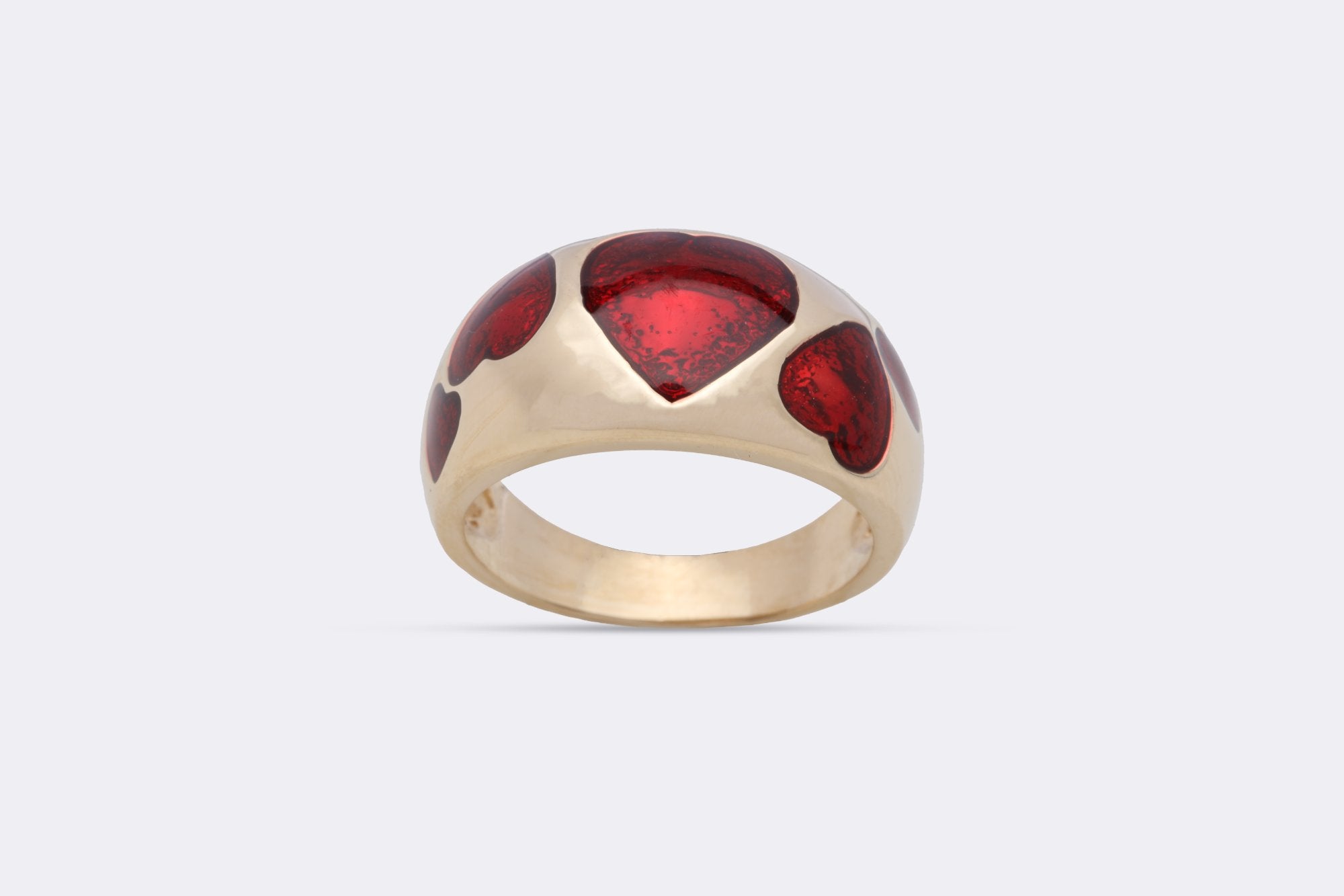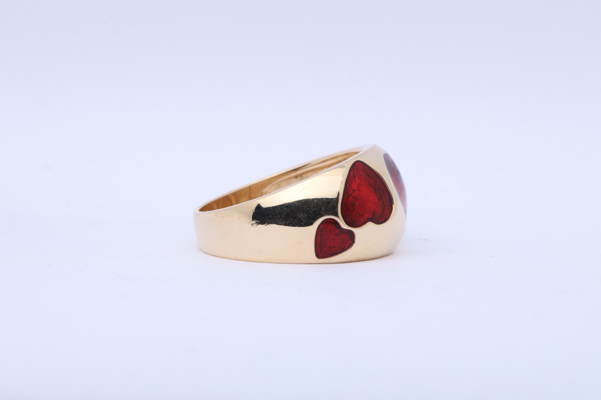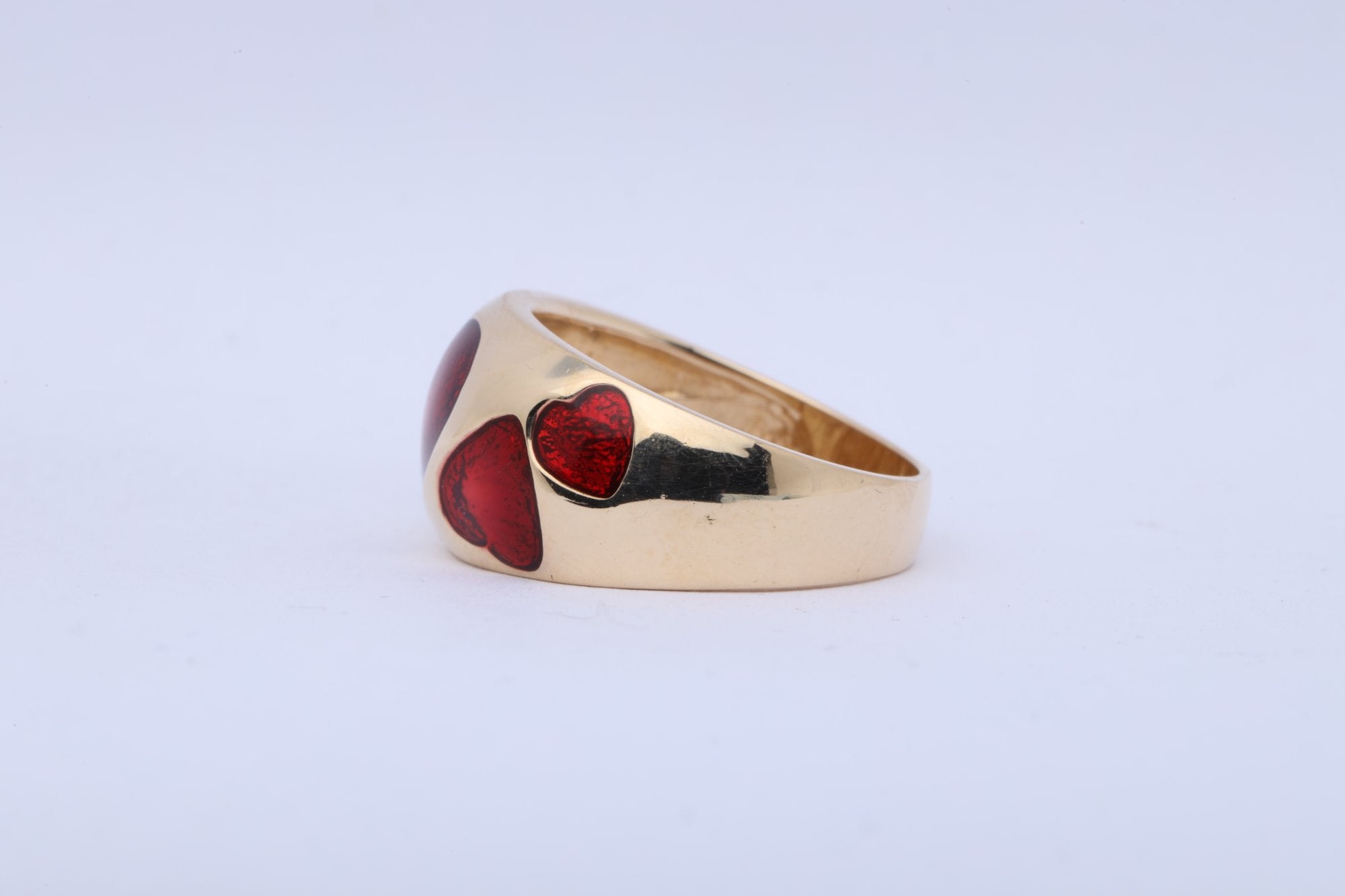 14k Yellow Gold Red Enamel Heart Dome Fashion Ring Size 8 (7.75g.)