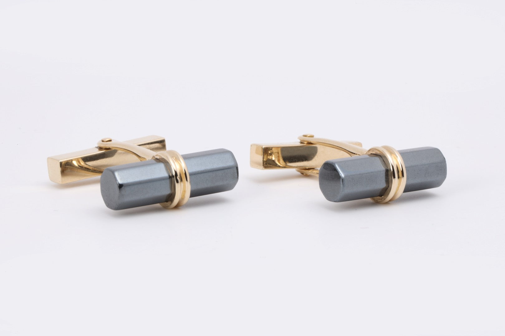 Tiffany & Co. 14k Yellow Gold Hematite Bar Cuff Links (13.79g.)
