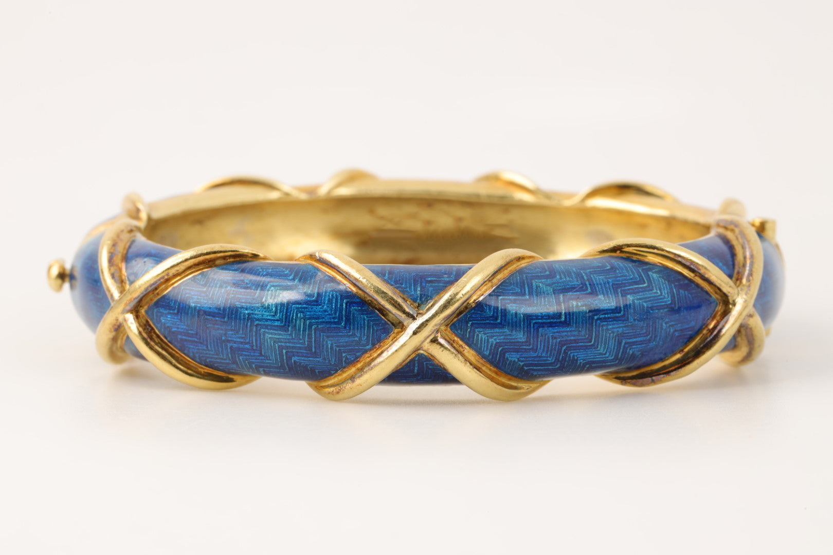 6.75" Tiffany & Co. Vintage 18k Yellow Gold Blue Enamel X Bracelet (94.91g.)