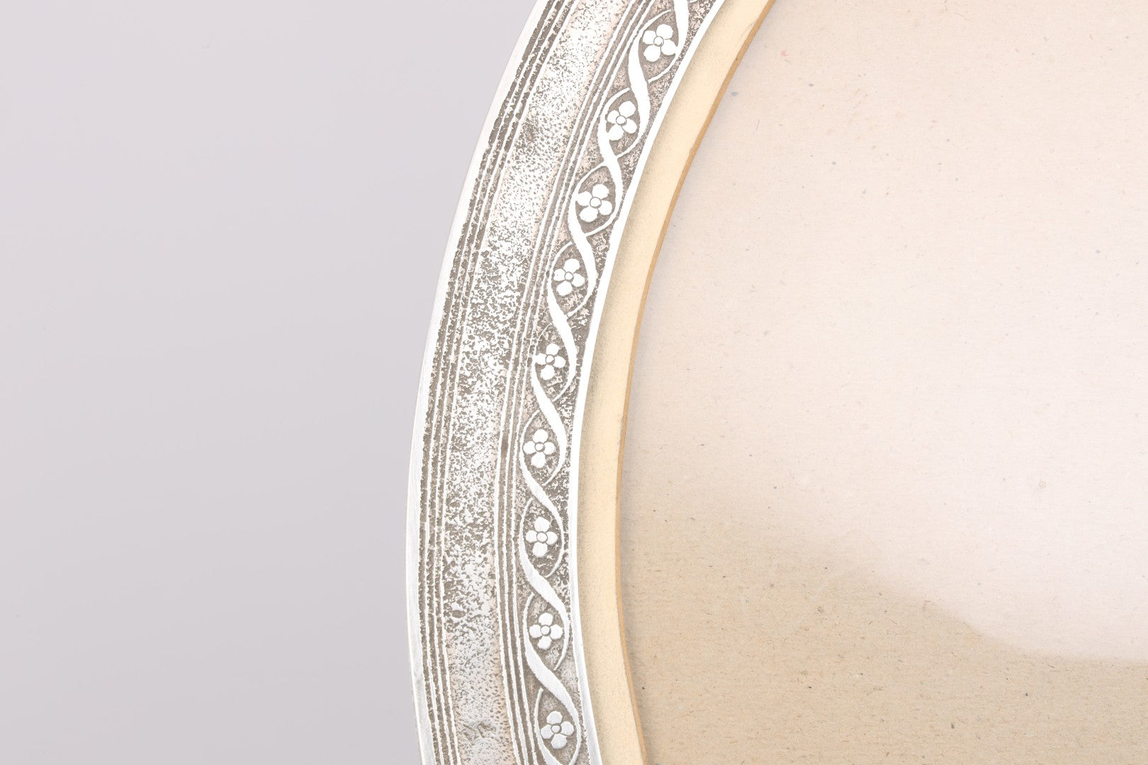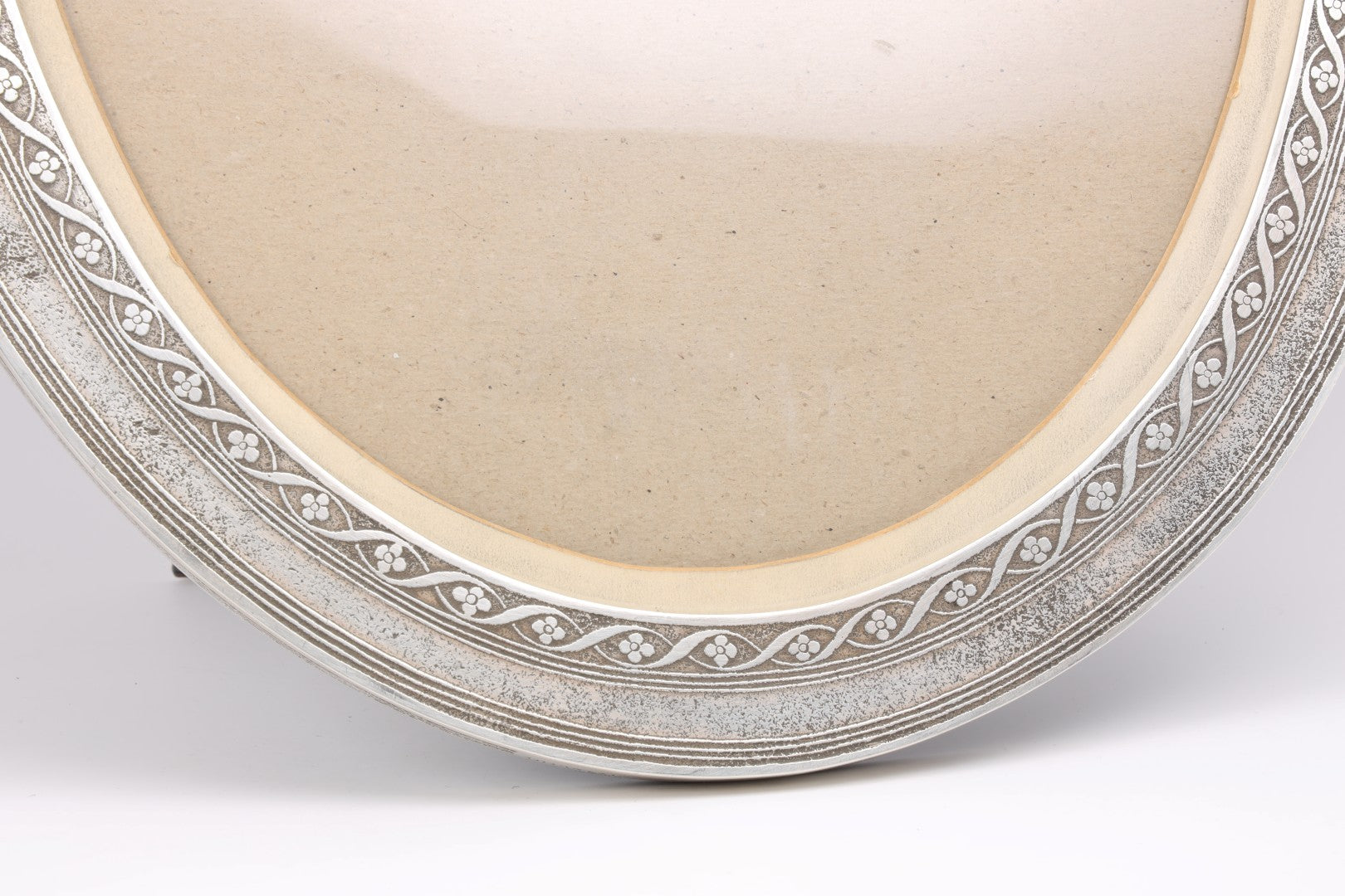 This exceptional antique oval picture frame by Tiffany & Co., produced circa 1906, is crafted from solid 925 sterling silver and reflects the brand’s renowned craftsmanship and timeless design. Substantial in both size and weight, the frame measures 16.5 inches tall by 13.5 inches wide, with a 13.90mm profile. Weighing an impressive 1,732 grams, it is an heirloom-quality piece ideal for display in a fine interior or collection.