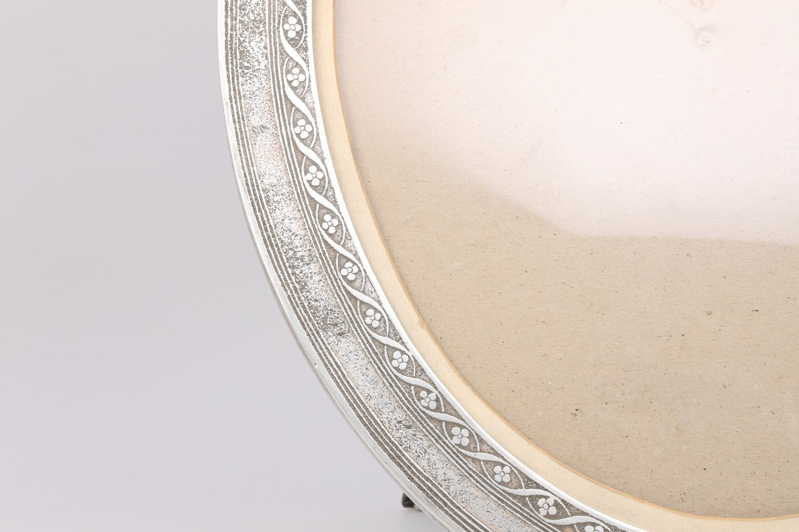 The sterling silver frame itself is in excellent condition (7/10) with no structural damage or imperfections. The stand, however, shows signs of wear with noticeable damage to the fabric, consistent with its antique age. PM Number: PM2010365.