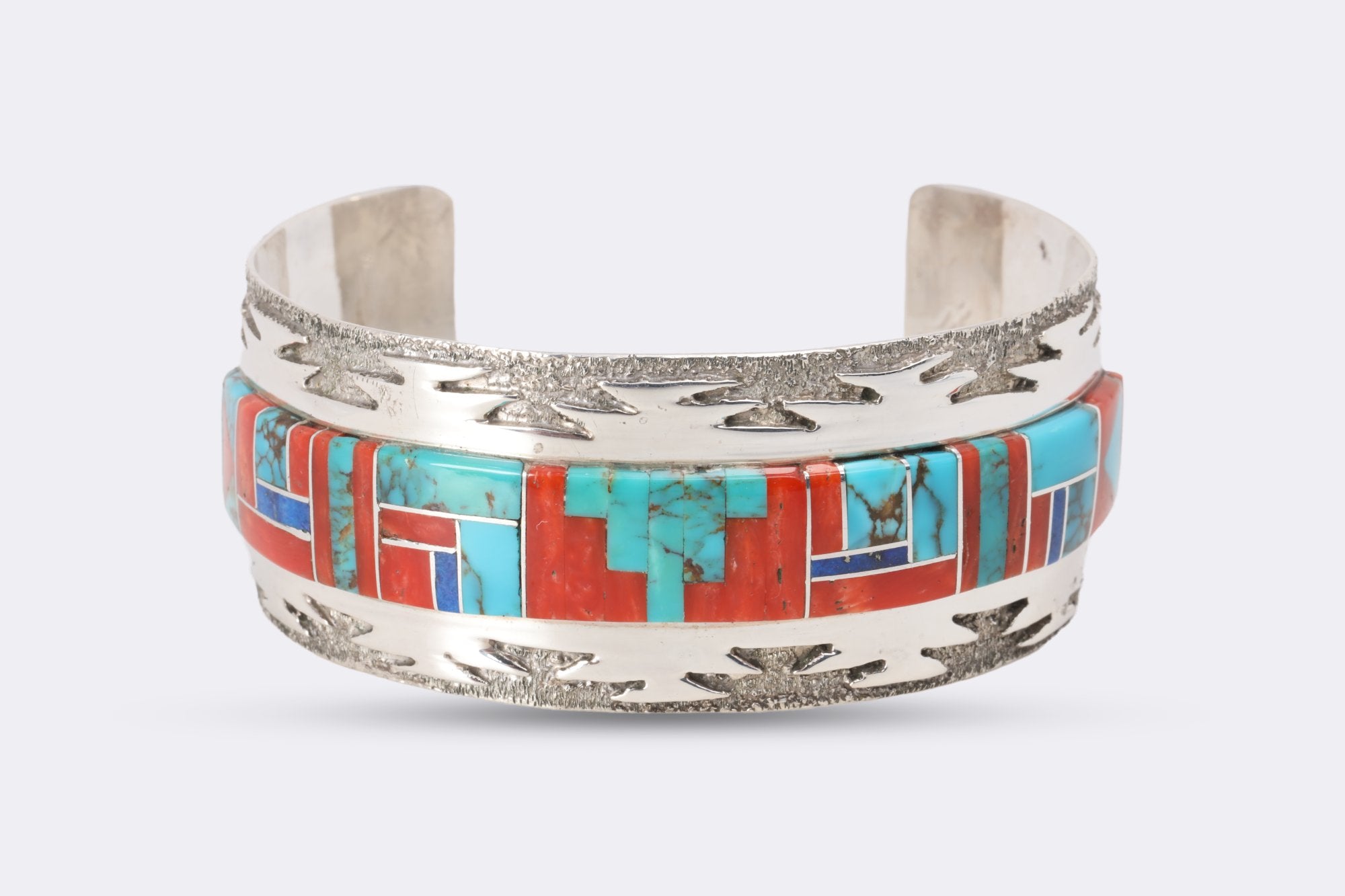 - Gemstones: Turquoise, Coral, & Lapis Lazuli Inlay